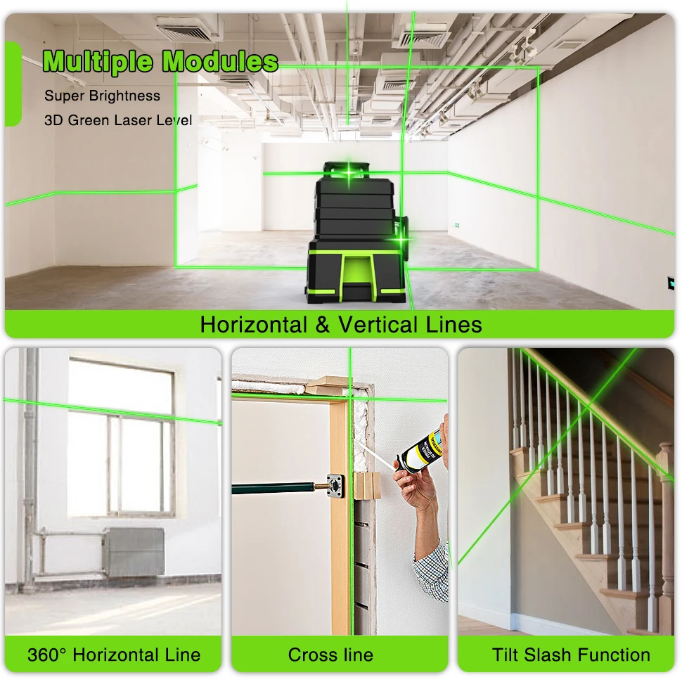 CLUBIONA ME12T 3D 12 линий Новый ABS пластик и Резина Оболочка Зеленый лазерный уровень 360 с пультом дистанционного управления и 5200mah литий-ионный аккумулятор