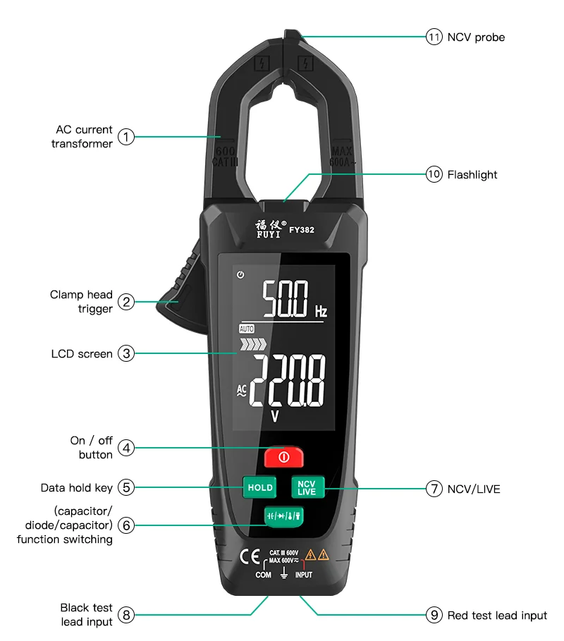 1. Этот измеритель является умным цифровым зажимом с стабильной производительностью, безопасностью и надежностью. Конструкция всей машины основана на крупномасштабном интегральном преобразователе A/D с двумя интегральными схемами, двойном дисплее, цепи защиты от перегрузки полного диапазона, И уникальный дизайн внешнего вида делает его специальным электрическим инструментом с превосходной производительностью.