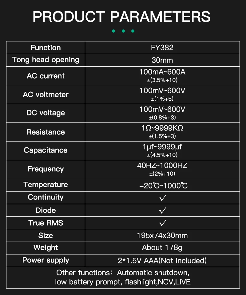 2. Этот измерительный прибор может использоваться для измерения напряжения переменного и постоянного тока, переменного тока, сопротивления, емкости, температуры, тока и частоты. Это идеальный инструмент для пользователей, чтобы носить с собой.