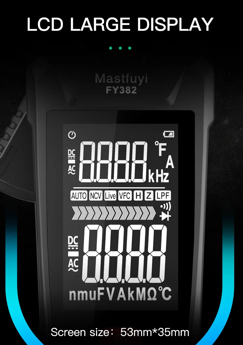 9999 отсчетов цифровой мультиметр с большим экраном Профессиональный истинный RMS AC/DC тестер напряжения тока Гц Емкость Ом