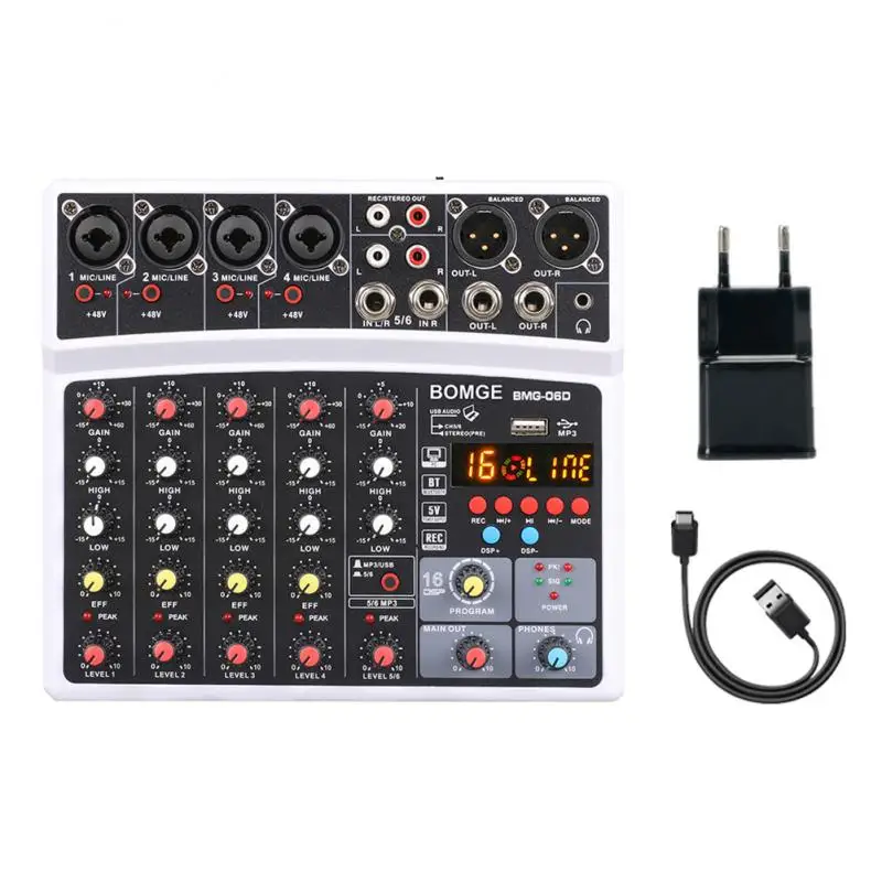 Этот миксер-многоцелевой миксер со звуковым кард6channel, который может удовлетворить семейное музыкальное производство пользователя, онлайн-трансляцию, обложку KSong и другие потребности.