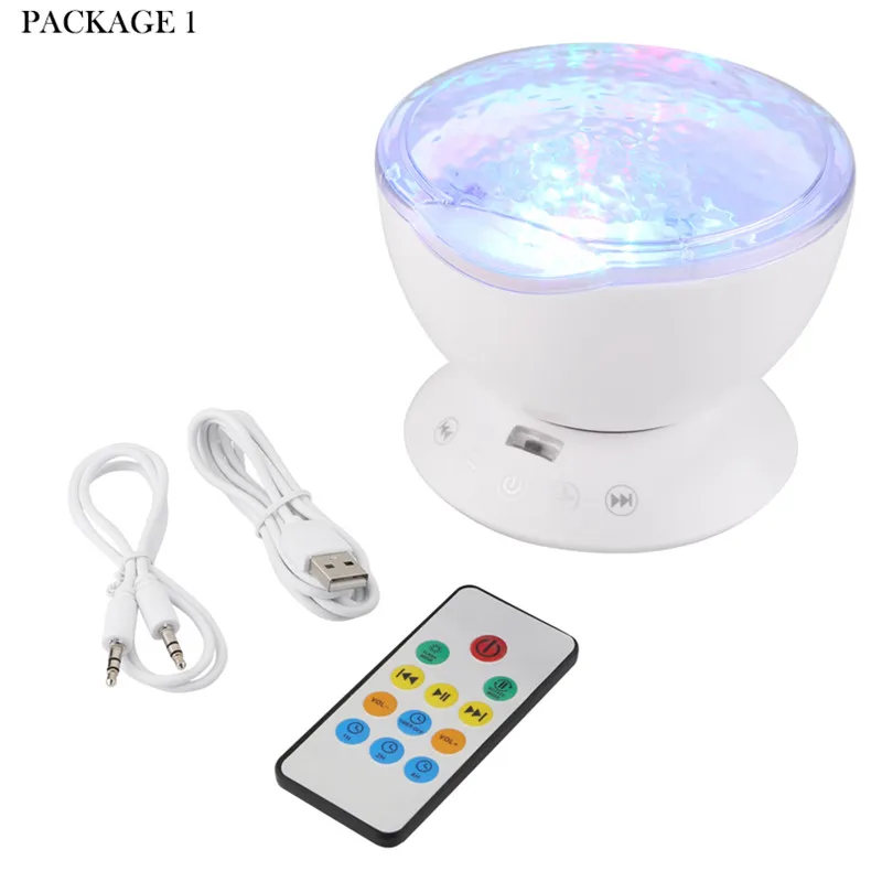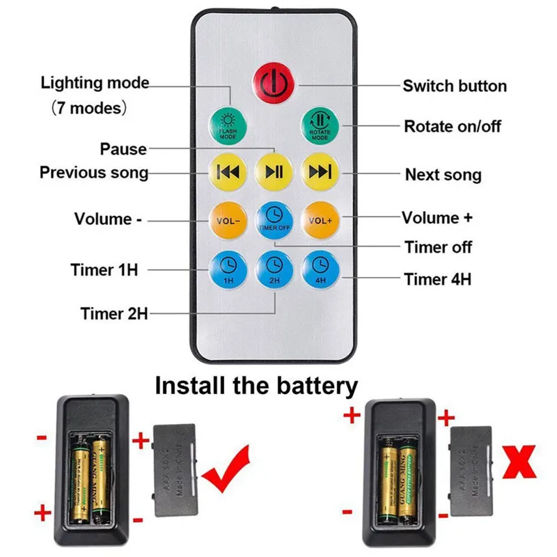Функции: светодиодный светильник-проектор, музыкальный динамик, Bluetooth, пульт дистанционного управления