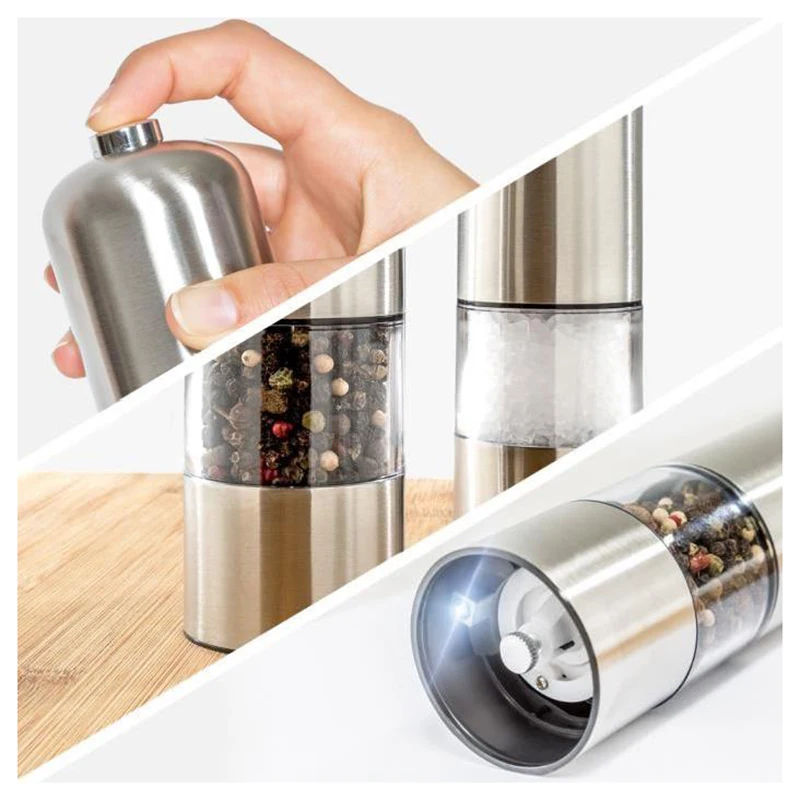 DescriptionПресс-Стиль Круглый перец мельница электрическая мельница из нержавеющей стали, соль мельница (соль) или перец мельница-серебряный цвет-с светильник