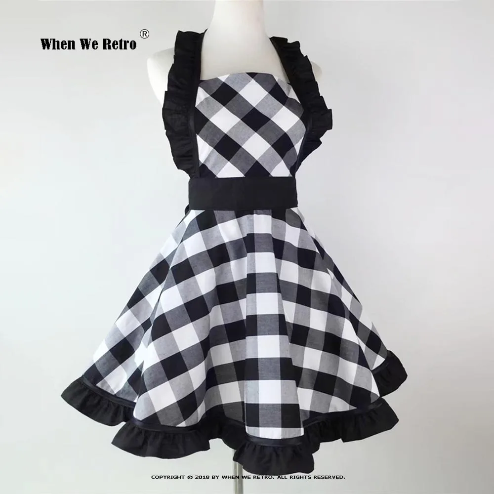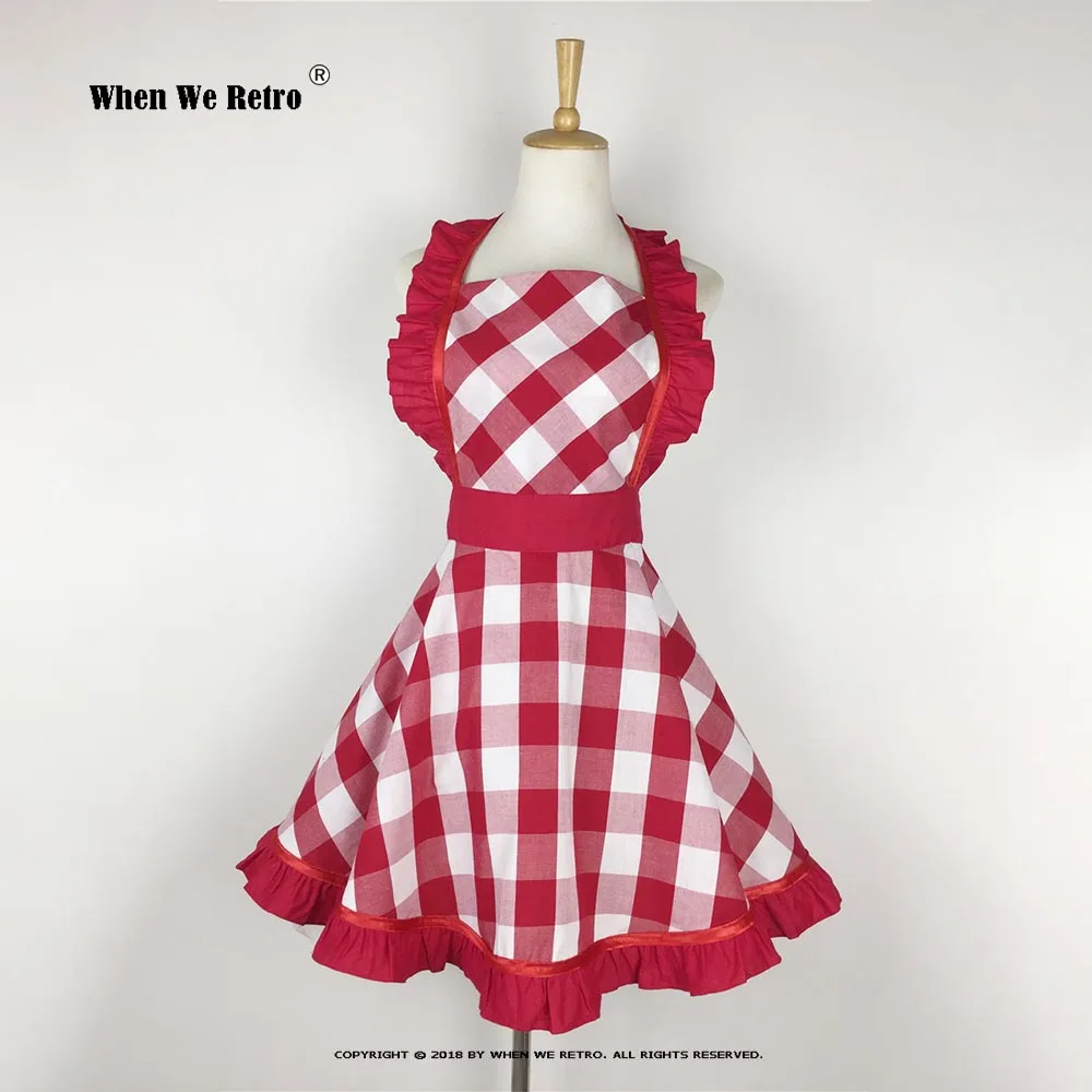 Ретро Хлопок Винтаж фартук SP1569 Холтер плед молочный чай магазин кухня Искусство цветочные работы фартуки для женщин официантка одежда