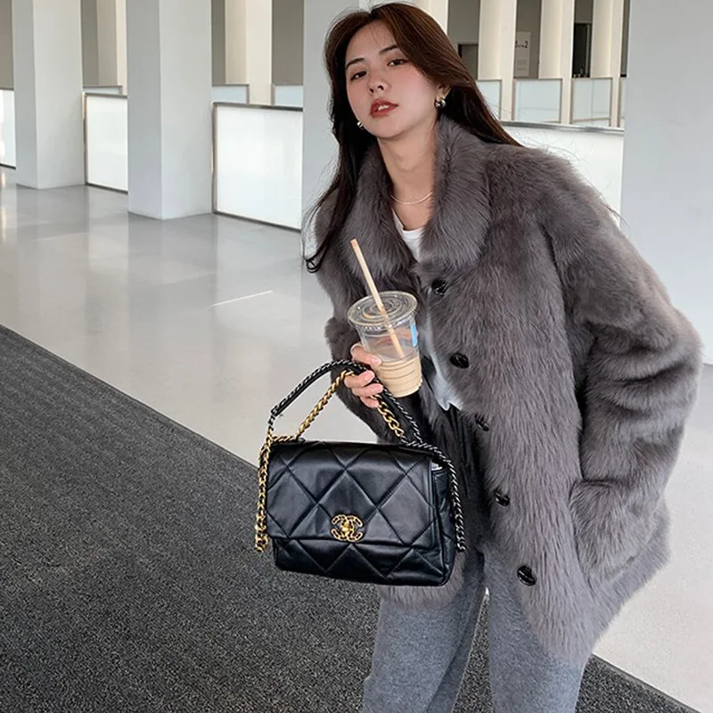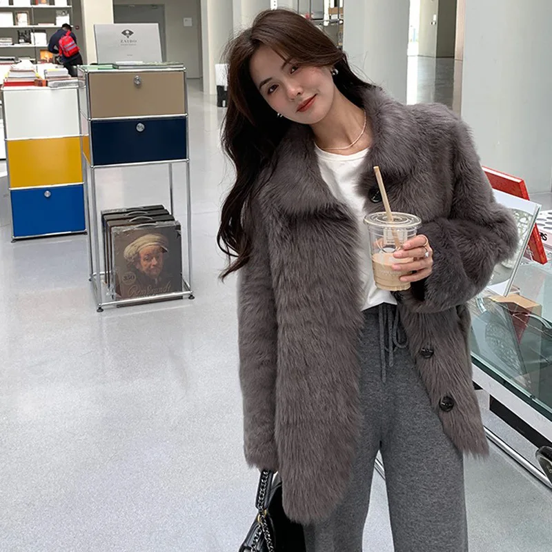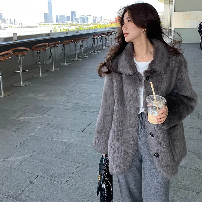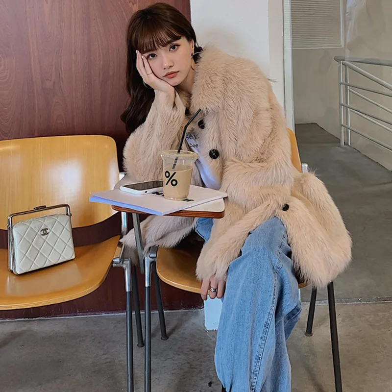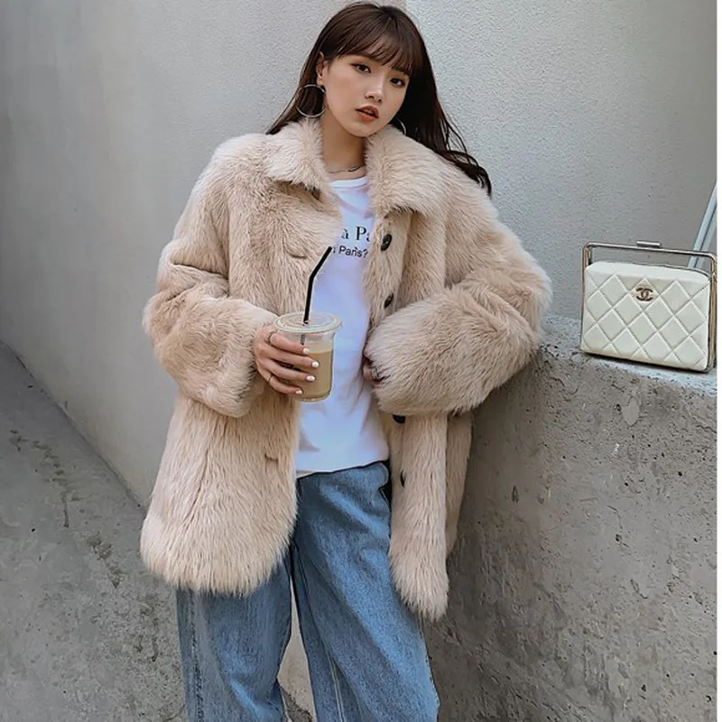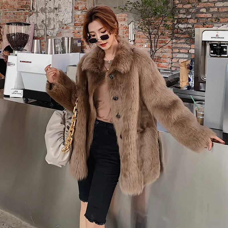 Женское пальто средней длины из искусственного меха с имитацией лисьего меха, модная теплая Повседневная Верхняя одежда с длинным рукавом и отложным воротником 6XL 7XL 8XL 9XL XF936