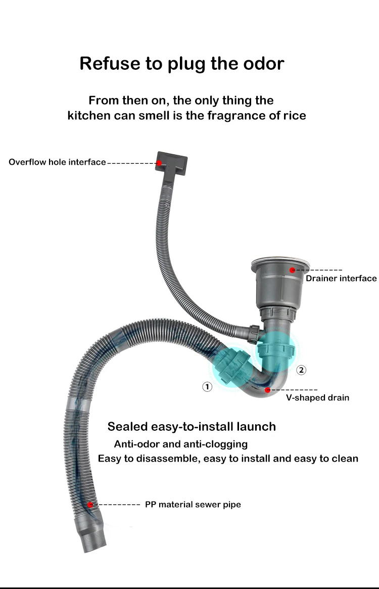 Аксессуары: 1 сливная труба, 1 сливная корзина, 1 Телескопическая сливная корзина.