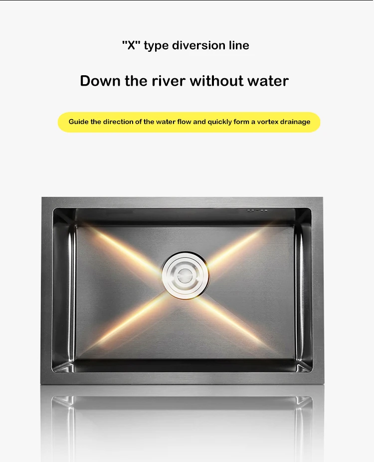 Раковина: Этот продукт представляет собой одиночную голеную раковину (не включая кран) с утолщенной и углубленной панелью, которая является прочной и не легко деформируется.