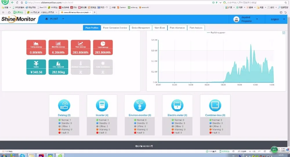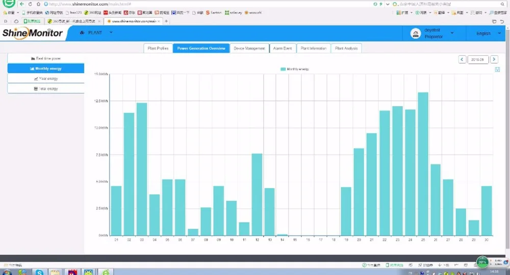 Энергетический интерфейс будет показывать кривую поколения электроэнергии каждый день. Сегодня на этой странице также представлены кВтч и общая кВтч.