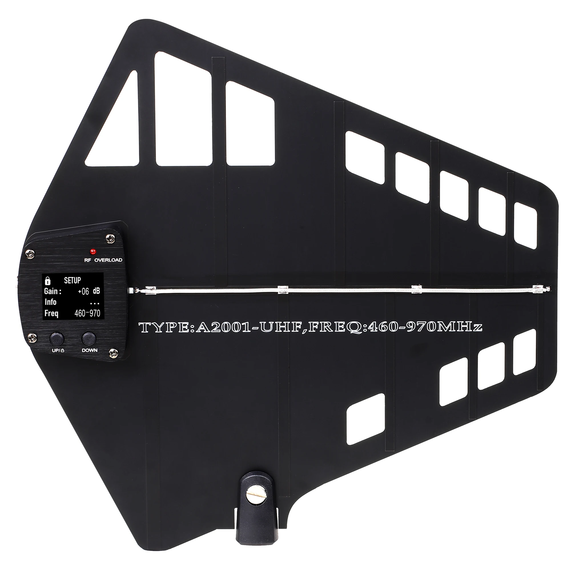 A2001-это активная направленная широкополосная приемная антенна, подходящая для беспроводных микрофонов, которая может компенсировать потери сигнала, вызванные слишком длинным кабелем.