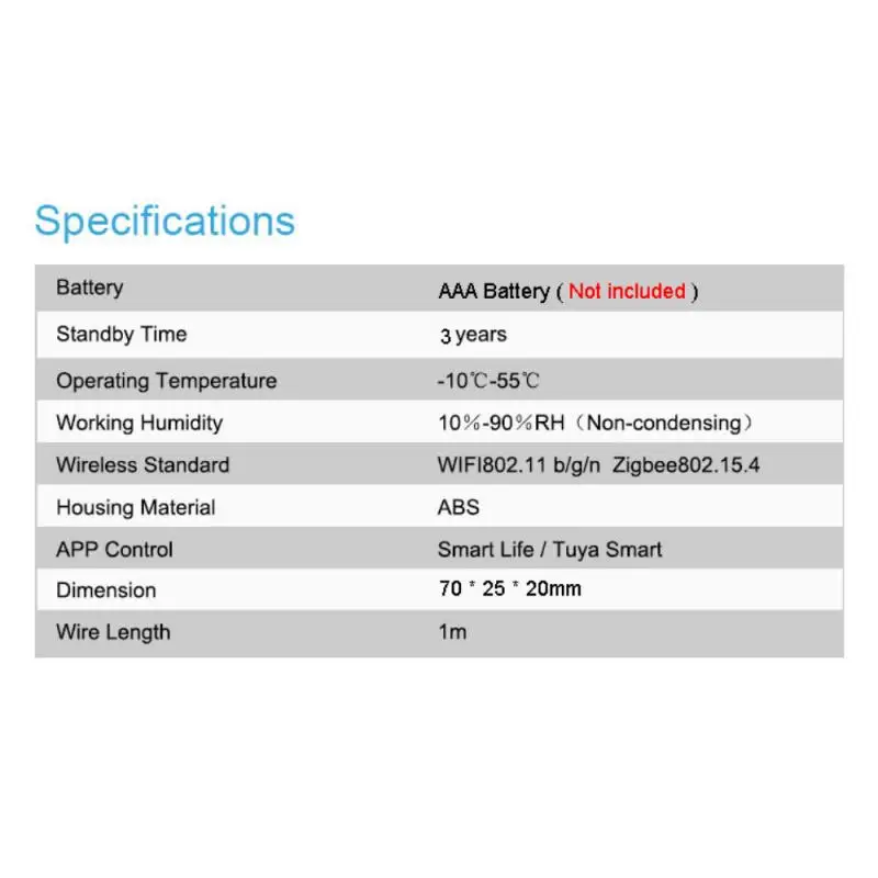 Длительное Время в режиме ожидания, больше беспокойства: низкое энергопотребление, в режиме ожидания до 1 года, не нужно часто заменять аккумулятор, когда батарея низкая, приложение push уведомление, пожалуйста, своевременно Замените аккумулятор