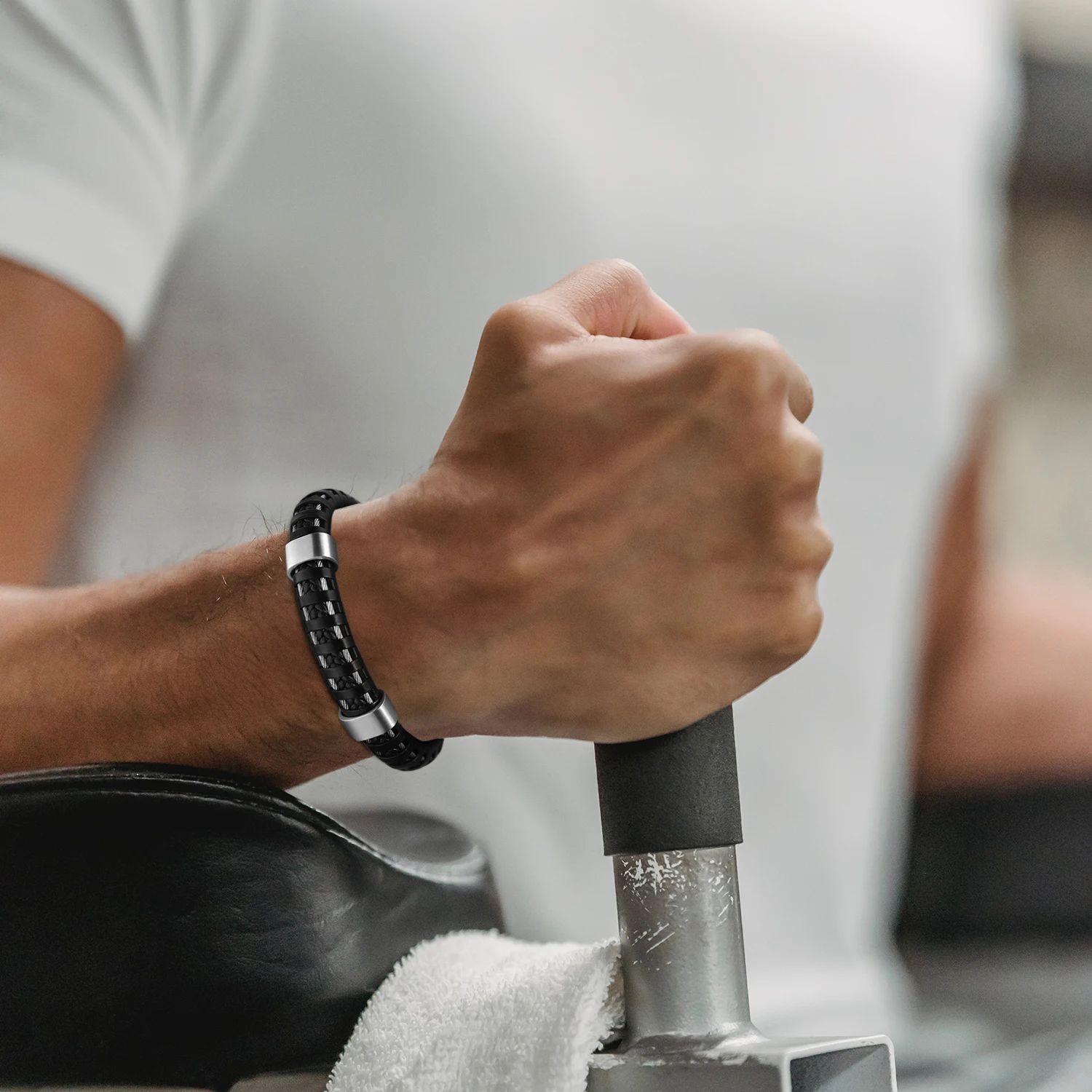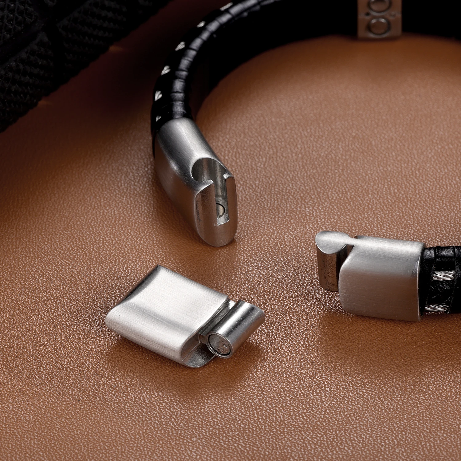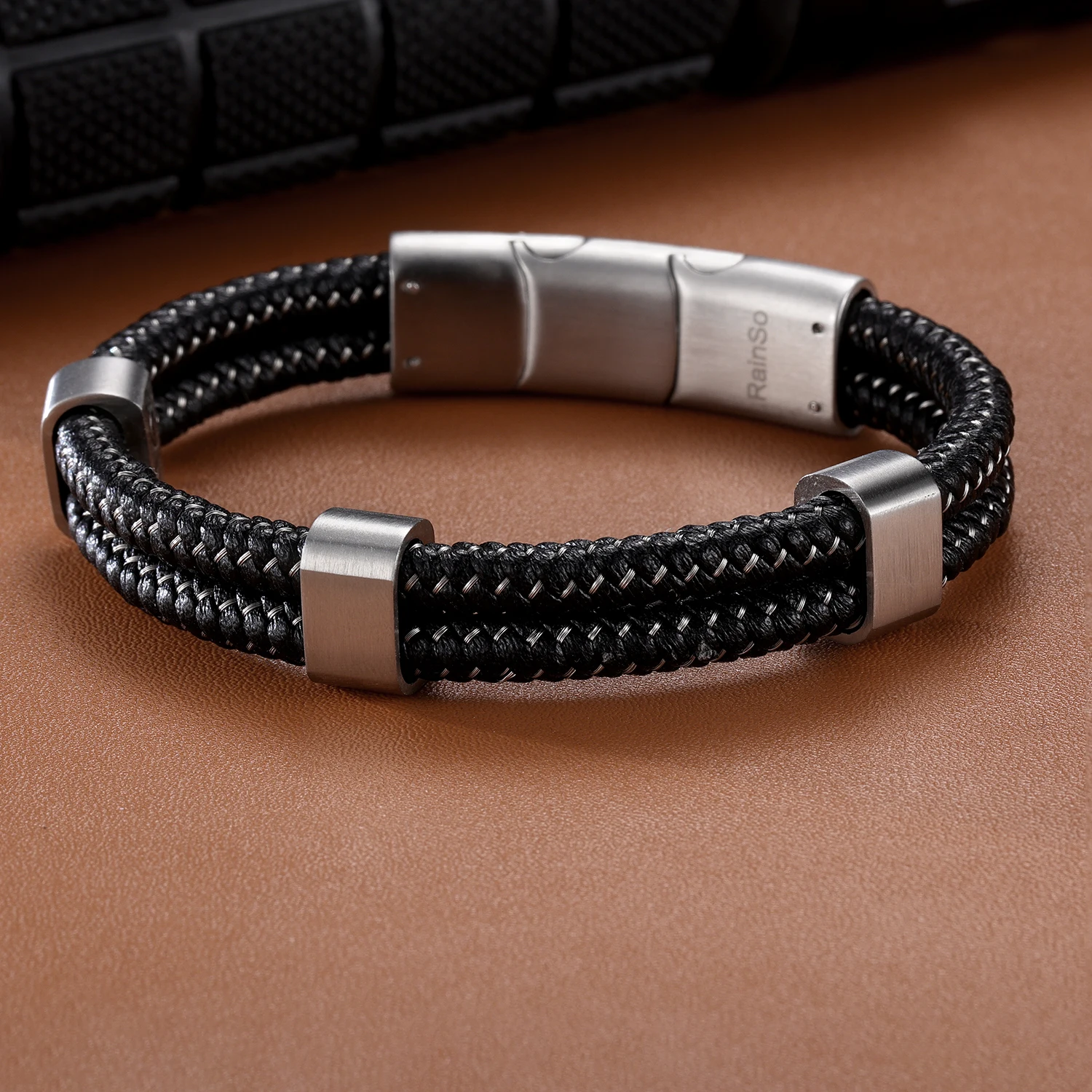 Rainso Men Leather Bracelet Bio Energy Magnetic Stainless Steel Bracelet Viking Male Hard Clasp Fashion Hand Chain Bracelet