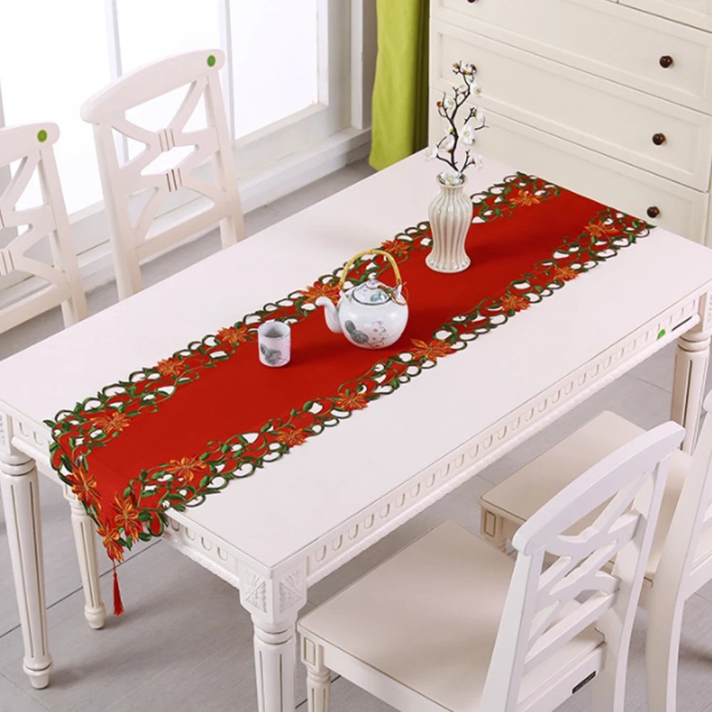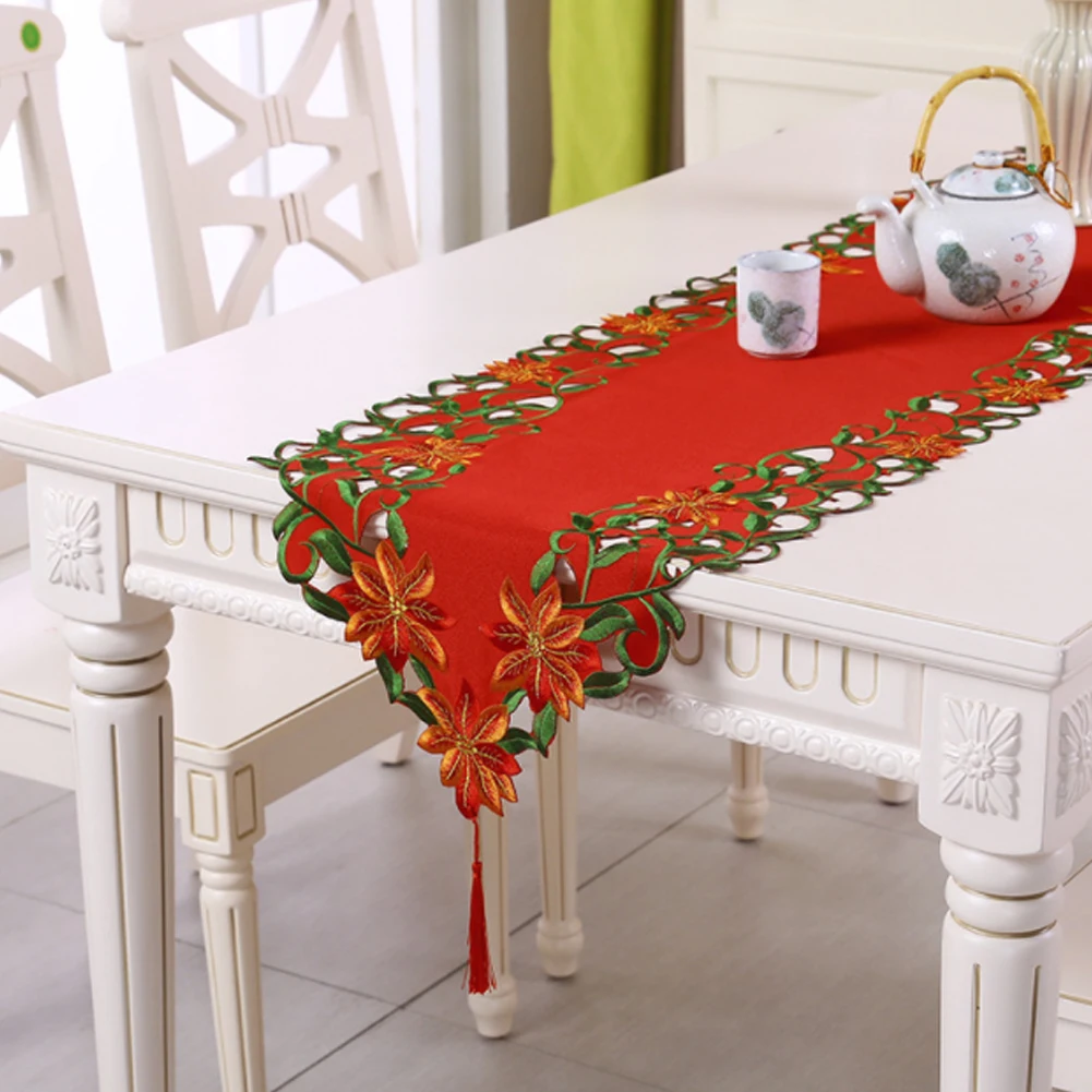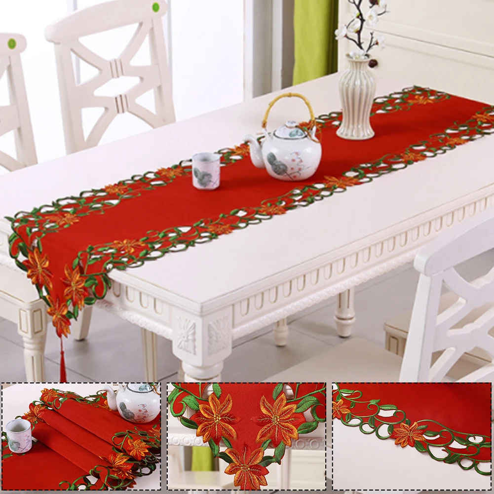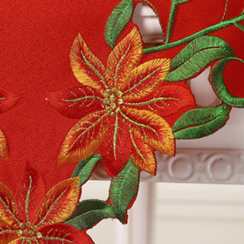 * 2. Красный фон с зеленым рождественским декоративным узором с изысканной вышивкой, эта скатерть идеально подходит для рождественского настольного декора.