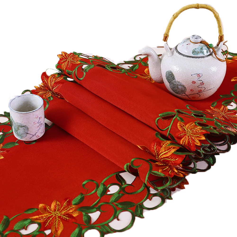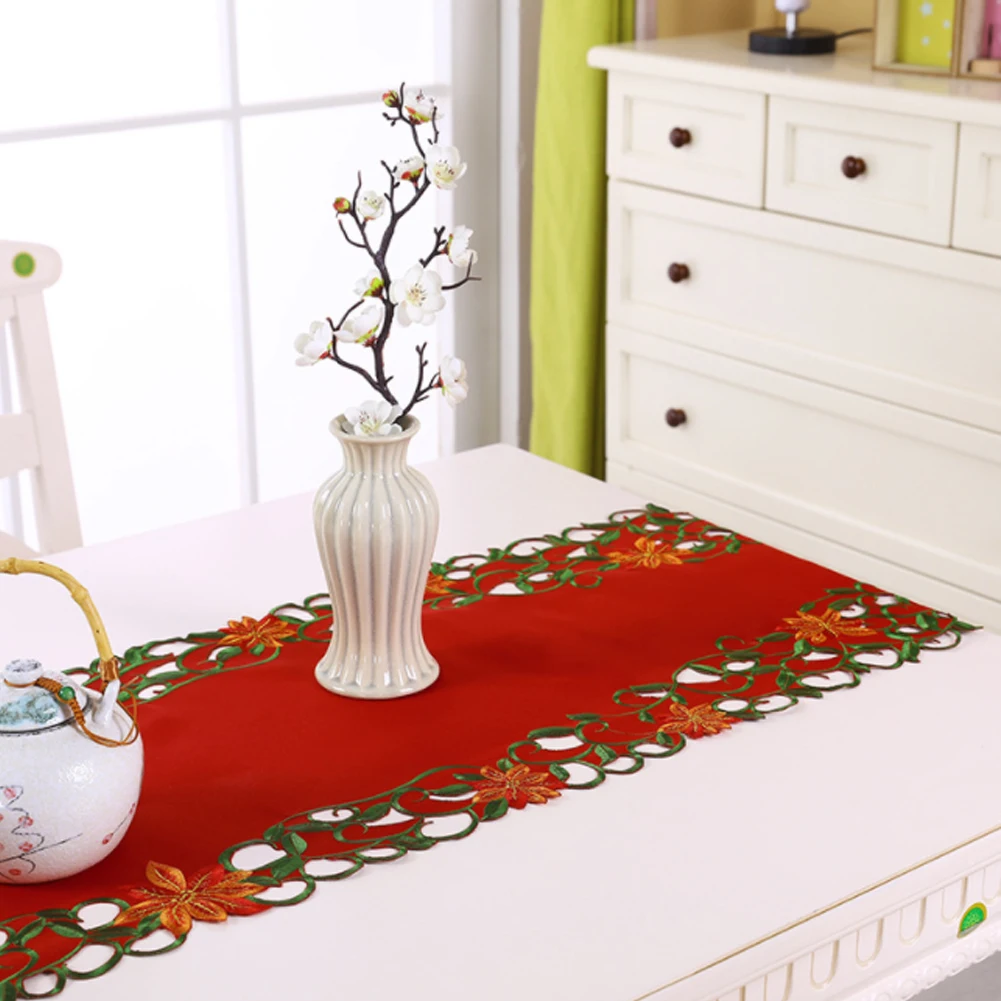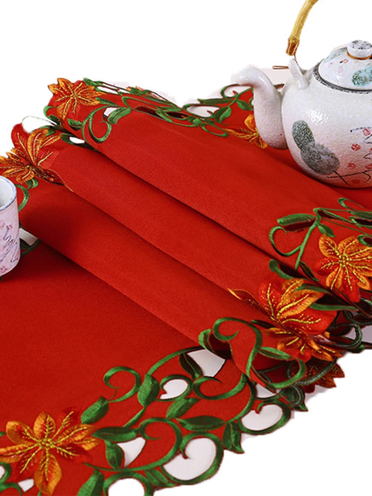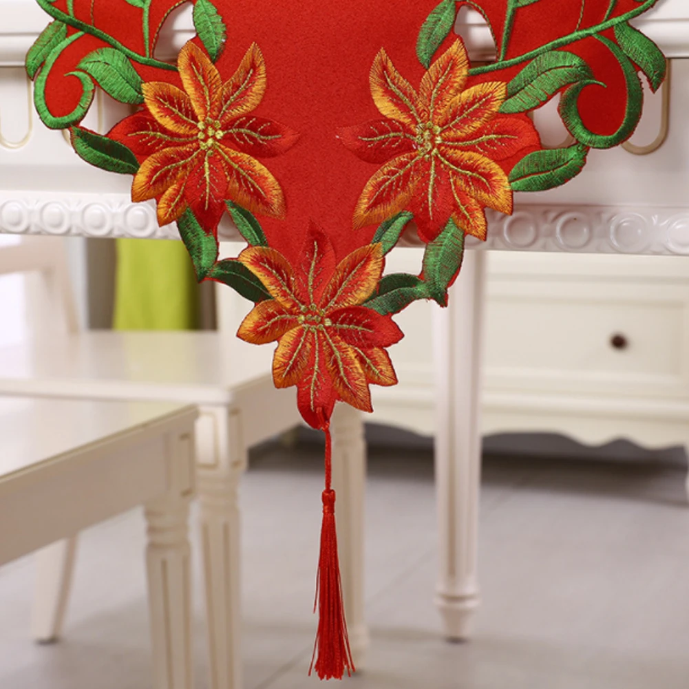 * 2. Красный фон с зеленым рождественским декоративным узором с изысканной вышивкой, эта скатерть идеально подходит для рождественского настольного декора.