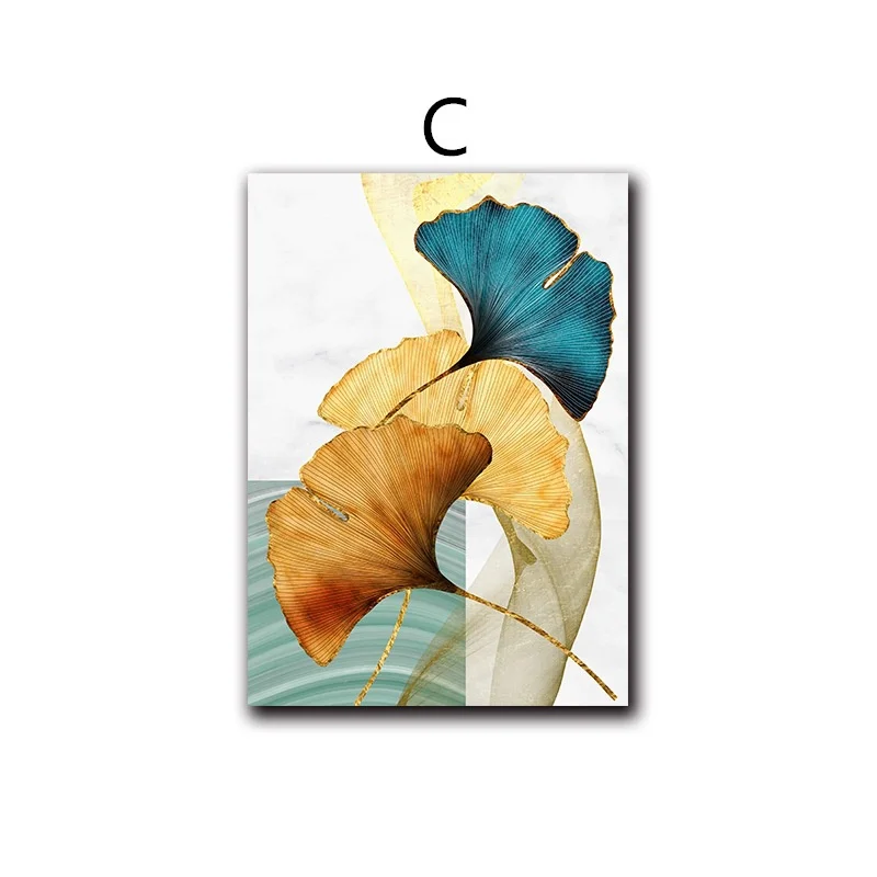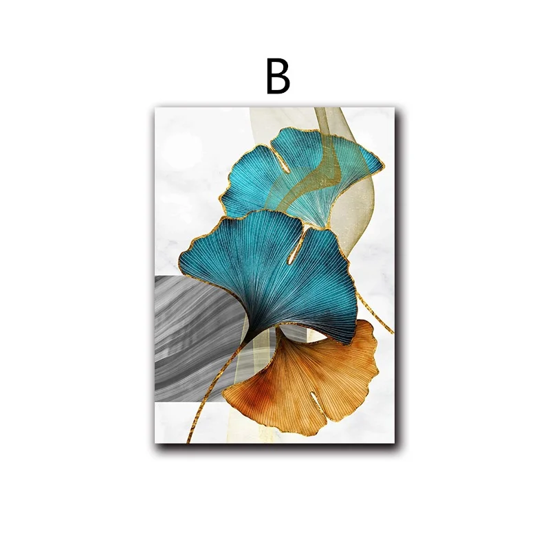 Синий, зеленый, желтый, золотой лист, Картина на холсте, скандинавские постеры, абстрактное искусство, принты, современные настенные картины для декора гостиной