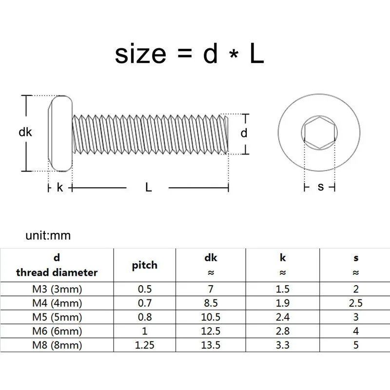 Размер =D(Диаметр резьбы) xL(Длина резьбы)