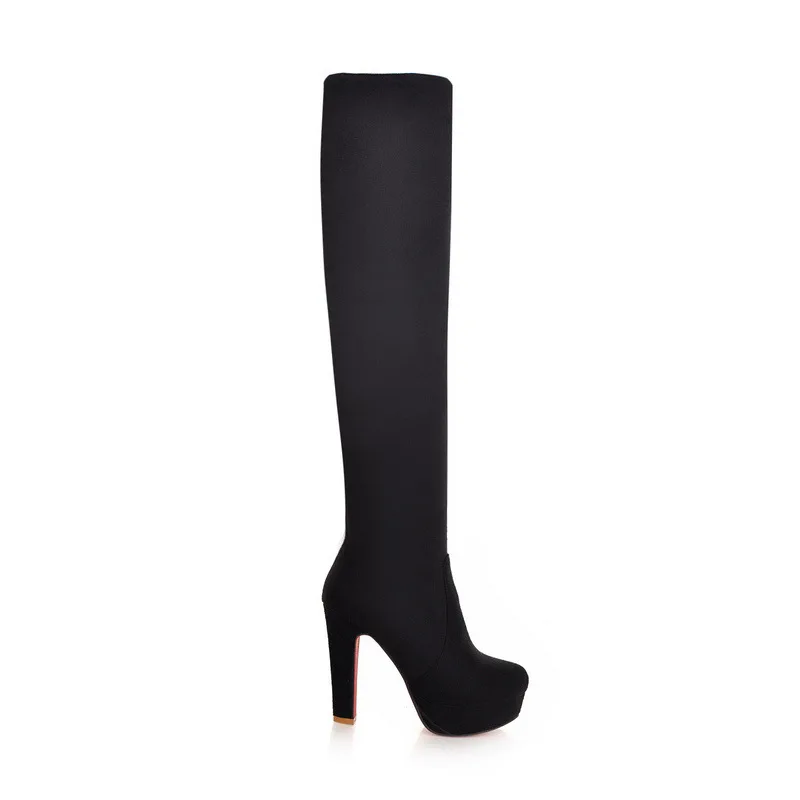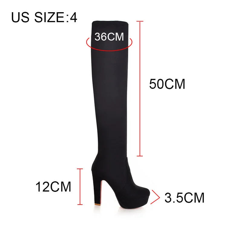 Пикантные Стрейчевые Сапоги выше колена женские сапоги на платформе и высоком каблуке 12 см женская обувь осень-зима высокие сапоги до бедра размера плюс 46