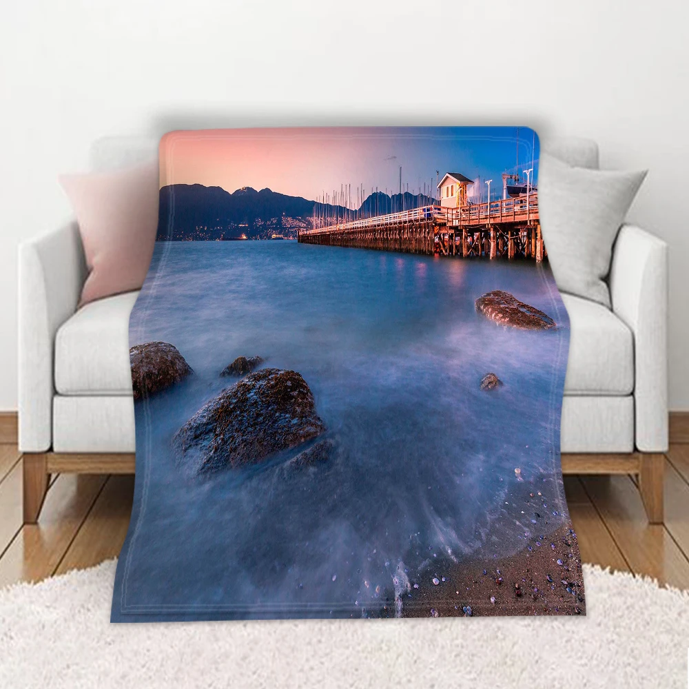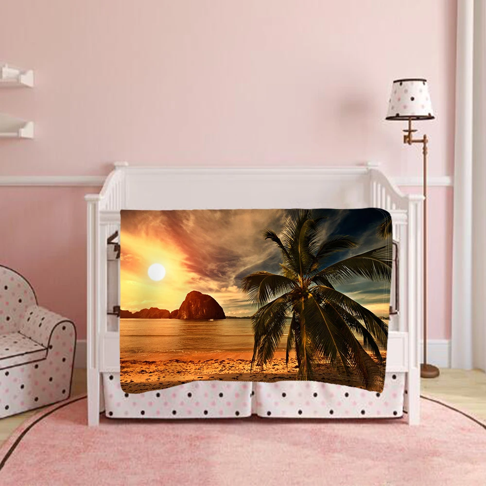 Флисовое одеяло на закате, одеяло на тему океана, мягкое удобное одеяло для машинной стирки, диван-кровать, фланелевое одеяло, пляжное одеяло, 59x86Inch