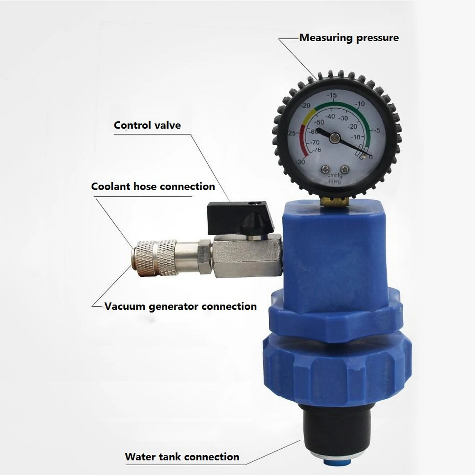 Shockproof pressure gauge: -30-0inhg-76-0cmhg.Please allow 1-2cm errors due to manual measurement, make sure that you do not mind before you order.