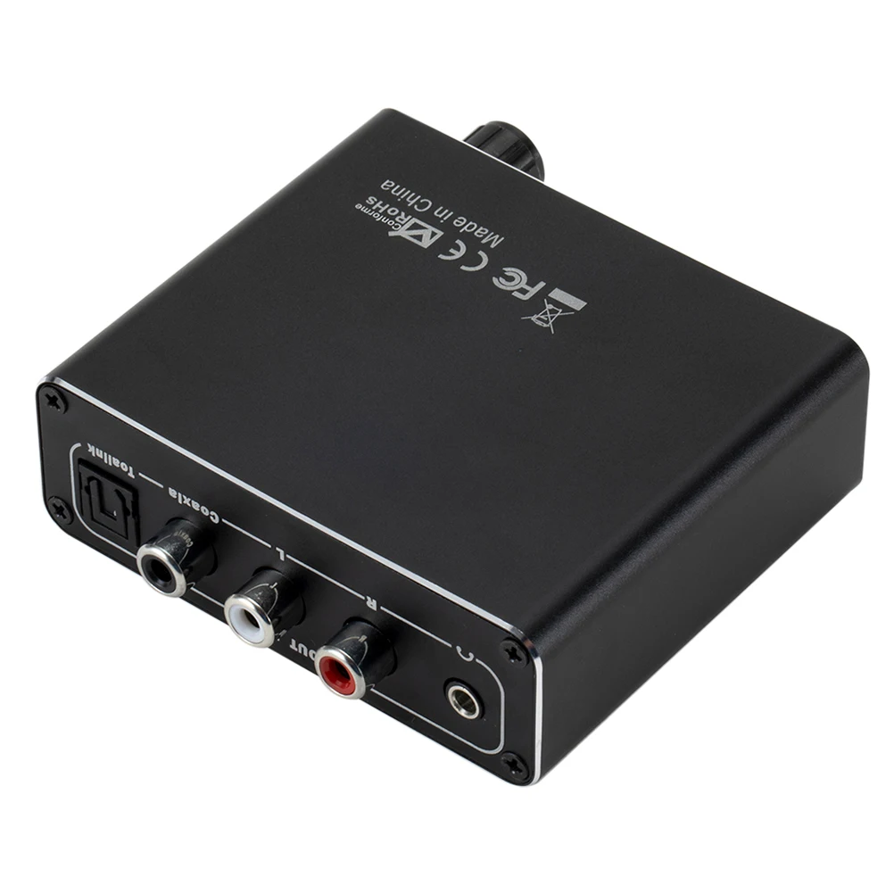 5. До 192 кГц Частота дискретизации: используя регулятор громкости, можно будет отрегулировать длину громкости звука RCA L/R + 3,5 мм Джек, который является простых в использовании (Примечание: вы не можете управлять Toslink или коаксиальным аудиовыходом). На самом деле он поддерживает частоту дискретизации 32, 44,1, 48, 96 и 192 кГц, так же, как 24-бит S/PDIF входящий бит потока на левые и правые каналы.