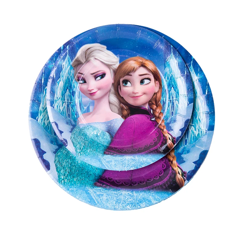 Одноразовые столовые приборы с изображением принцессы Анны и Эльзы, бумажные тарелки для детского дня рождения, вечерние принадлежности для душа