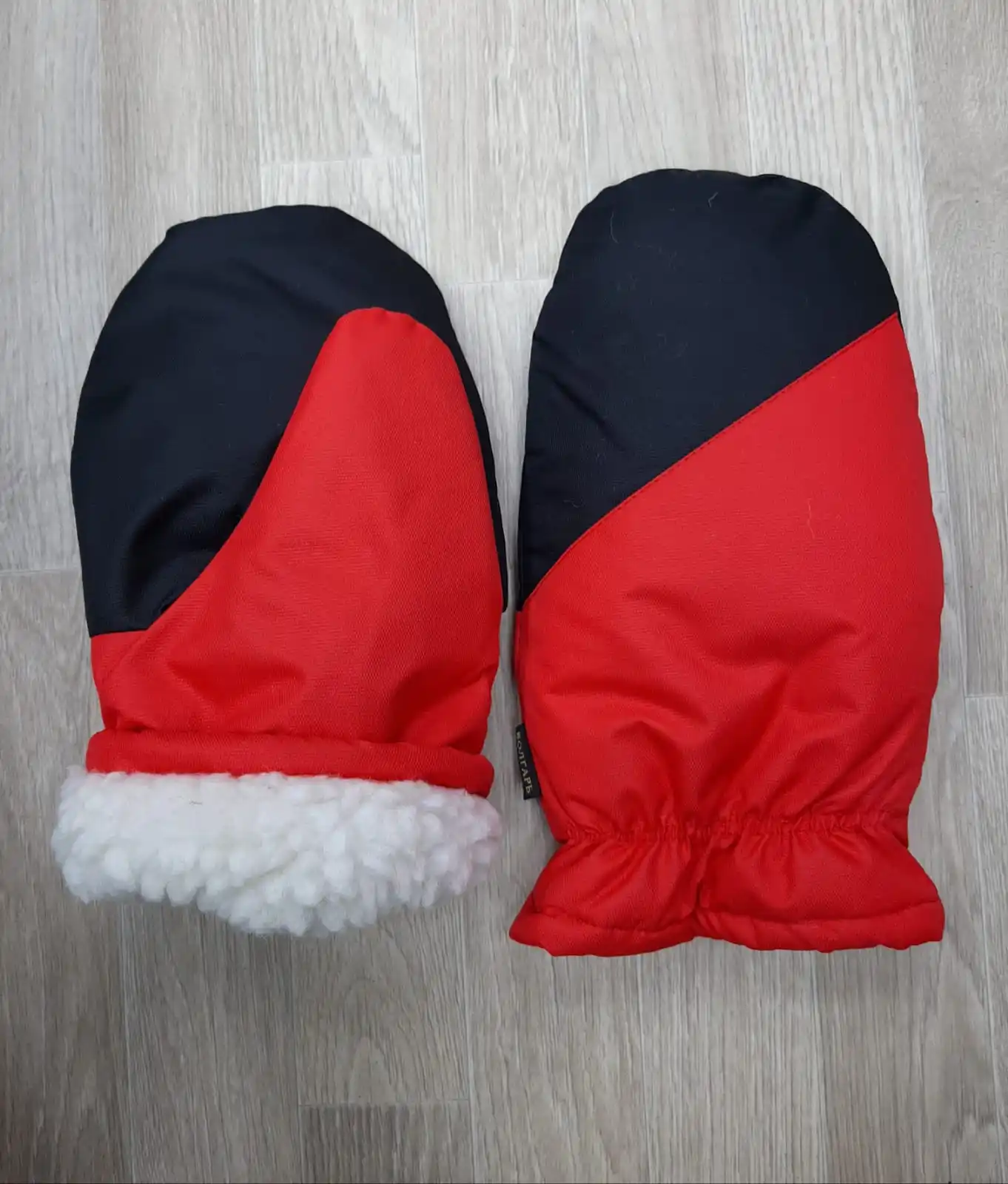 Рукавицы- варежки выполнены из водоотталкивающей ткани .