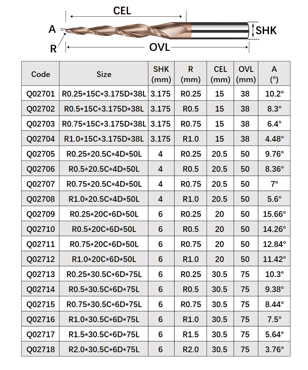Радиус шарика: 0,25 мм, 0,5 мм, 0,75 мм, 1,0 мм, 1,5 мм, 2,0 мм