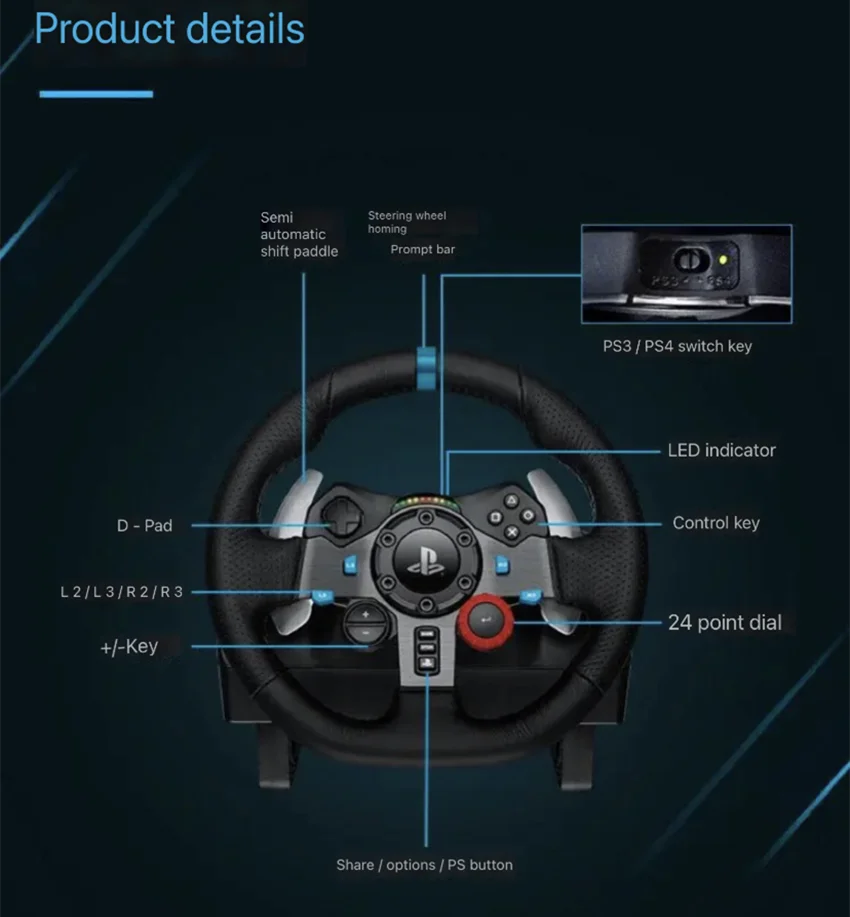 Original Logitech G29 game racing steering wheel pedal shift lever suitable for PS3/PS4/PS5 racing simulation driving games