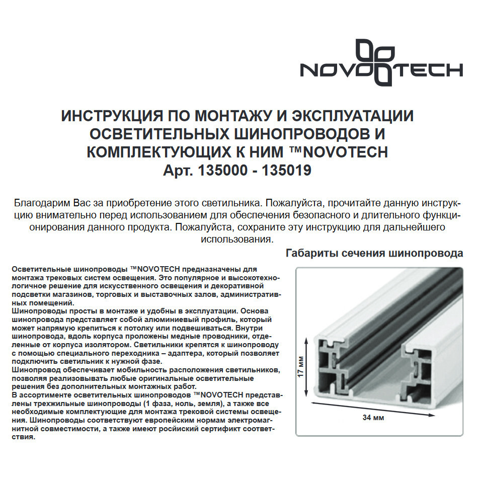 Название: Соединитель внутренний с токопроводом для однофазного шинопровода,Novotech Track 135007