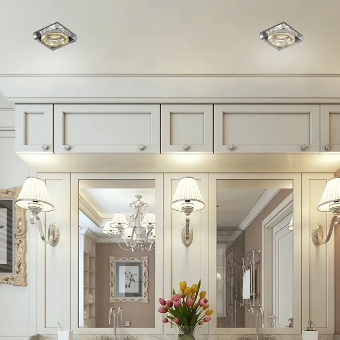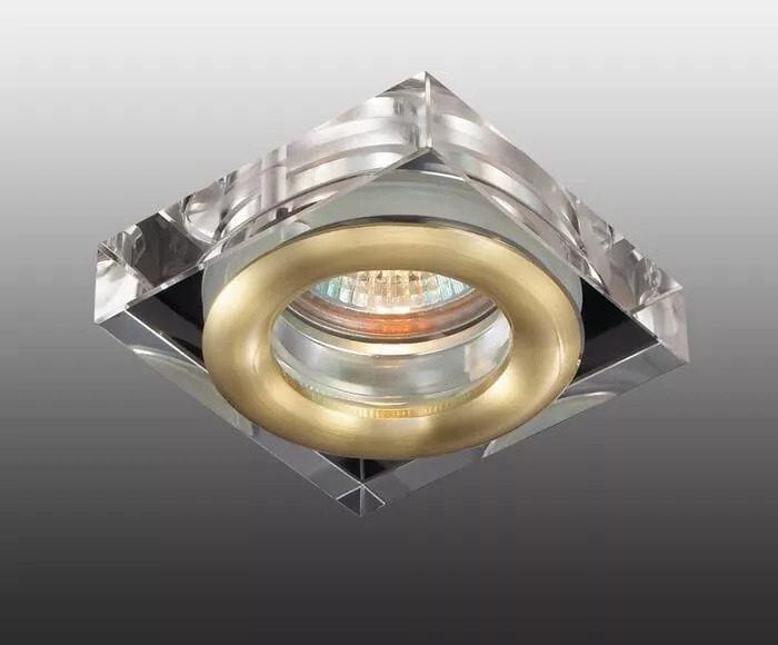 Built-in lamp Novotech Aqua 369881 from Hungary made by Novotech for kitchen premises.Manufacturer: NOVOTECHCollection (series): SpotPurpose: recessed lampLine: AQUAMaterial: aluminum casting/CrystalColor: transparent crystal ceiling light, decor-matte goldBase: GX5.3Power: 50WVoltage: 12VWaterproof: IP54Protection class: 3Lighting area, Sq. M: 2,5