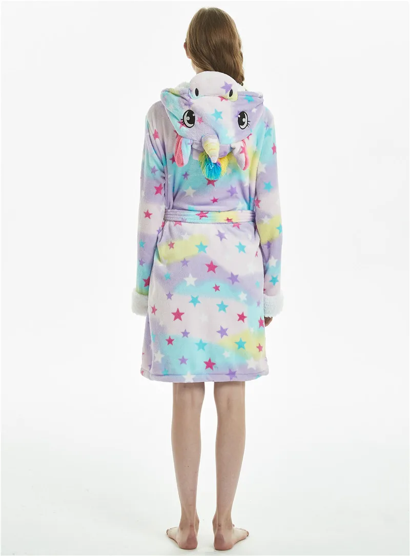 Зимний фланелевый банный халат с единорогом для взрослых, женский и мужской банный халат, ночная рубашка с капюшоном и изображением животных, халат с изображением панды, одежда для сна