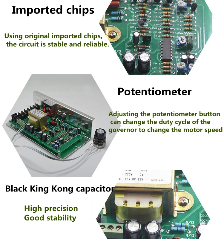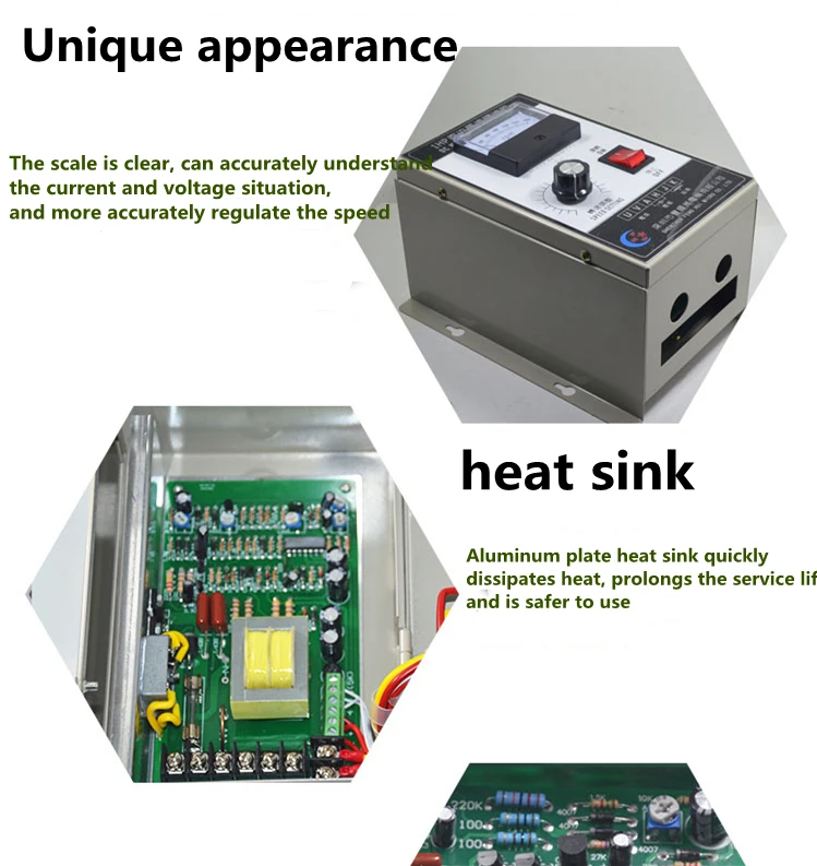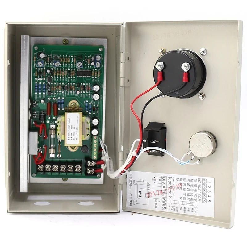 1. Входное напряжение ac220в, а выходное напряжение DC220V.2. Подходит для двигателя с мощностью не более 750 Вт.3. Регулировка ручки потенциометра может изменить выходное соотношение точки воздуха для регулирования скорости двигателя.