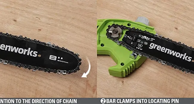Этот 40V литий-ионный полазав имеет 8 "бар и цепь цепной пилы (0,5 датчик давления 33 ссылки, 3/8» LP (Ближний свет отдачи цепи), автоматическая масленка, мягкая overmold сцепление, алюминиевый вал и ручное натяжение цепи. Без бензина, без шнура, без свечи зажигания.