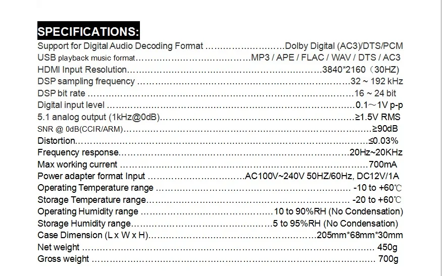 5. Поддерживает декодирование Dolby digital AC3, DTS, LPCM, HDCD, PCM, Dolby Digital, Dolby Pro Logic II и других цифровых аудиоформатов.