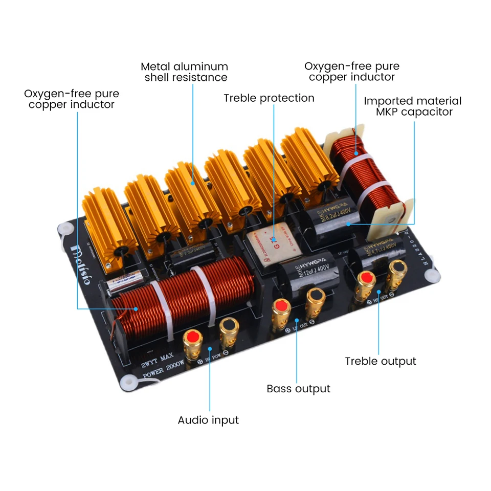 2. Кроссовер является популярным готовым продуктом, который подключен к различным динамикам. Подходит для высоких и средних басов, а качество звука лучше всего; Но не все динамики и все Кроссоверы лучше всего подходят. После использования может быть слишком много или слишком мало высоких частот, низкая частота и низкая частота басов, низкая частота или слишком толстые басы, И слишком много или слишком мало высокочастотных компонентов среднего уровня.