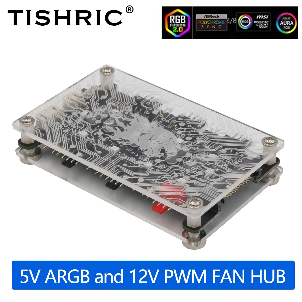 TISHRIC новейшая версия 2 в 1 6 канальный вентилятор 5V ARGB и 12V шим тока втулка вентилятора для ASUS/MSI 5V 3Pin 4Pin LED Скорость контроллер адаптер