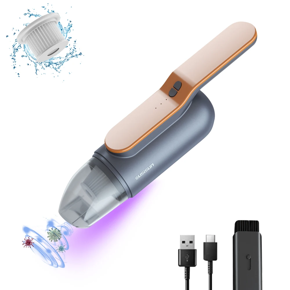 5. [Ultraviolet sterilization] Different from other vacuum cleaners, this UV car vacuum cleaner is equipped with a UV lamp. The powerful UV lamp can kill bacteria. At the same time, the washable filter also makes it easy for you to clean the vacuum cleaner in time.