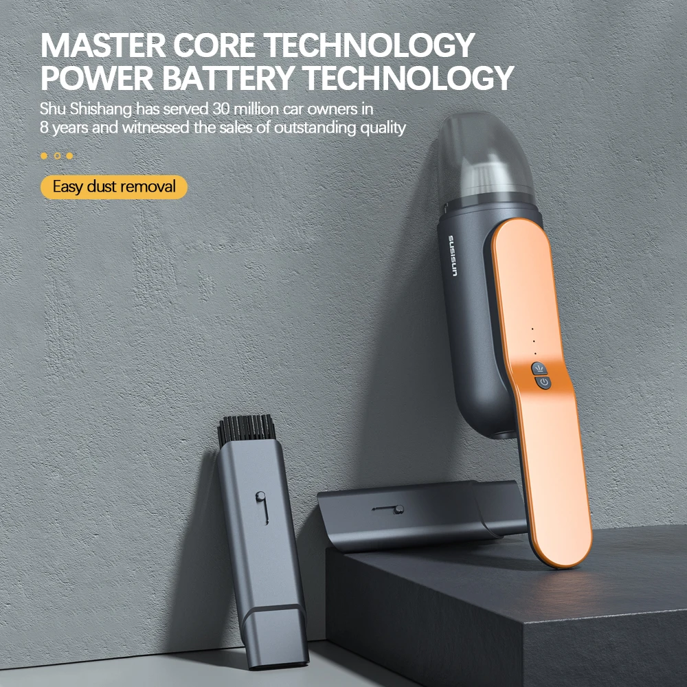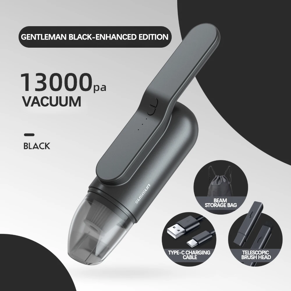 1. [Powerful suction] The mini handheld car vacuum cleaner has built-in cyclone technology to provide continuous strong suction. A mini portable vacuum cleaner equipped with a 120W high-quality motor provides a strong suction power of 13000Pa. It can not only effectively clean dust and paper scraps, but also small rocks and liquids.