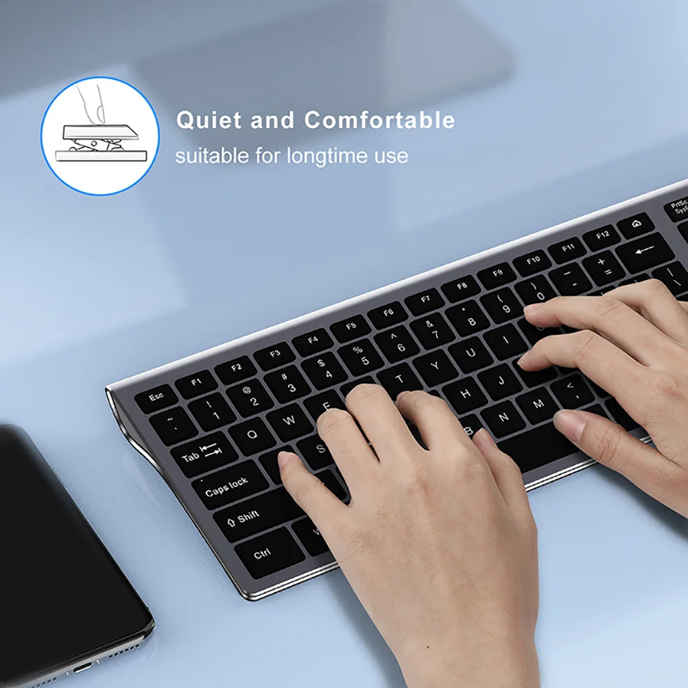 ✔Почему эта беспроводная клавиатура мышь комбо особенная --- стильный, благородный, элегантный, уникальный, красивый внешний вид, эргономичный тонкий и Перезаряжаемый дизайн-позволит вам наслаждаться высококачественной жизнью-высококлассный переключатель ножниц, тихие клавиши, эргономичный наклон, обтекаемый и модный дизайн клавиатуры позволит вам наслаждаться комфортным набором текста и щелчком. Обеспечьте лучшую жизнь и опыт работы для вас! Lekvey Премиум беспроводная клавиатура и мышь-идеальный компаньон для вашего офиса и дома!