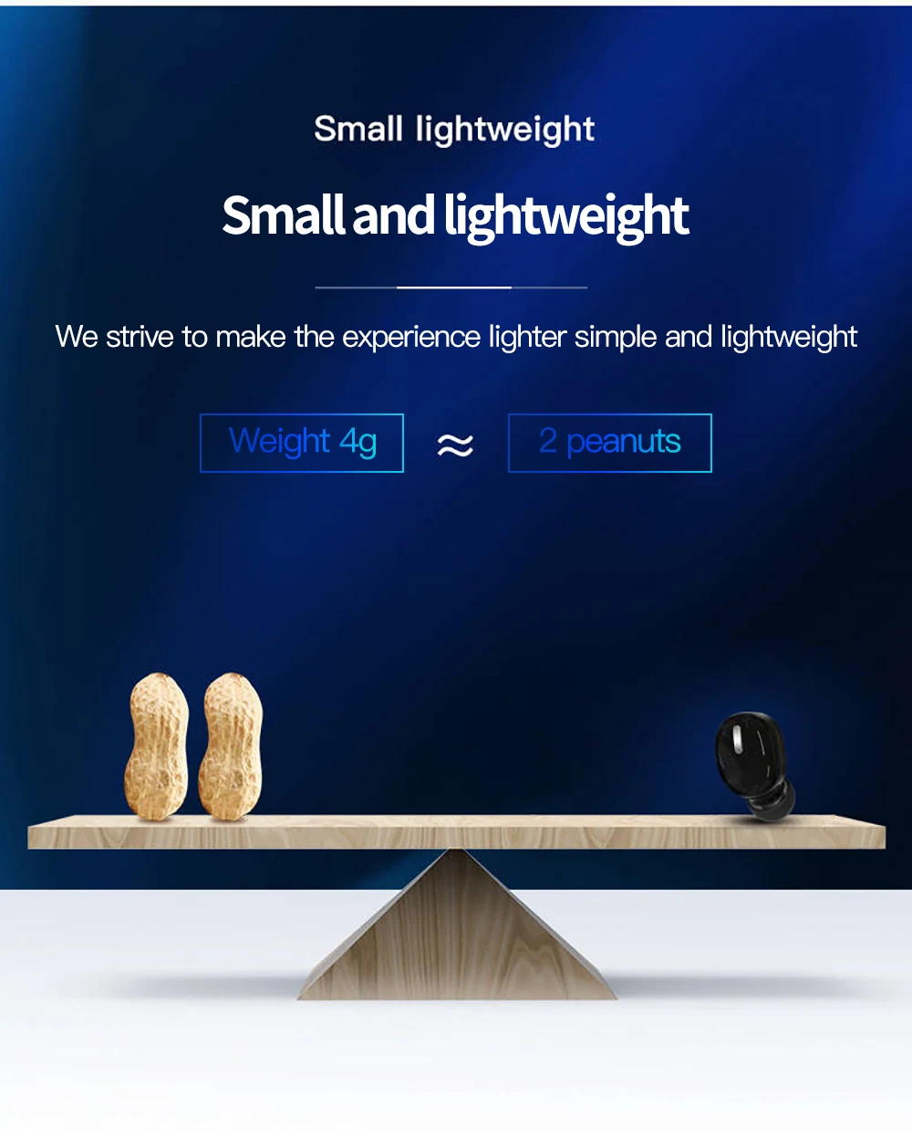 7.Built-in DSP audio processing system, can be a very good eliminate Noise and echo, to ensure clear communication, and music. Super Mini design earphone hidden in the ear, Small and light, stealth design.