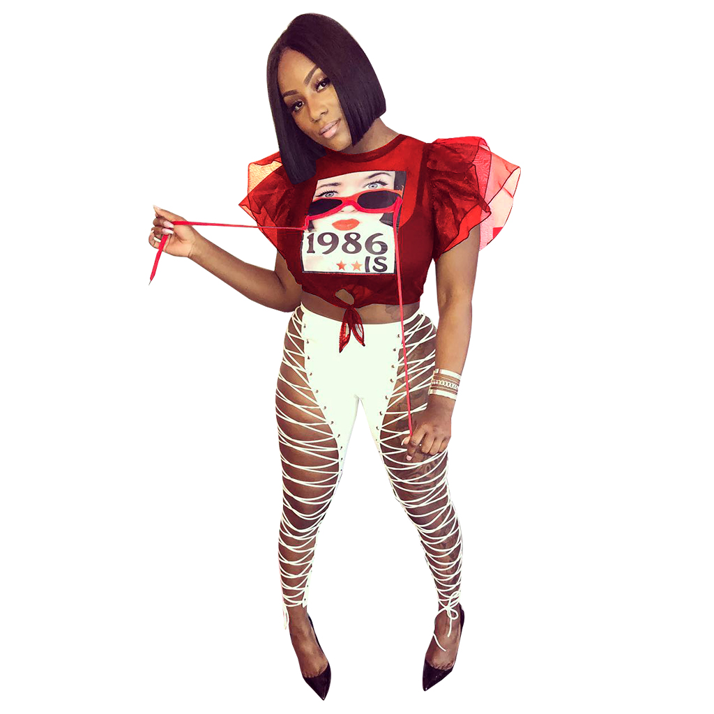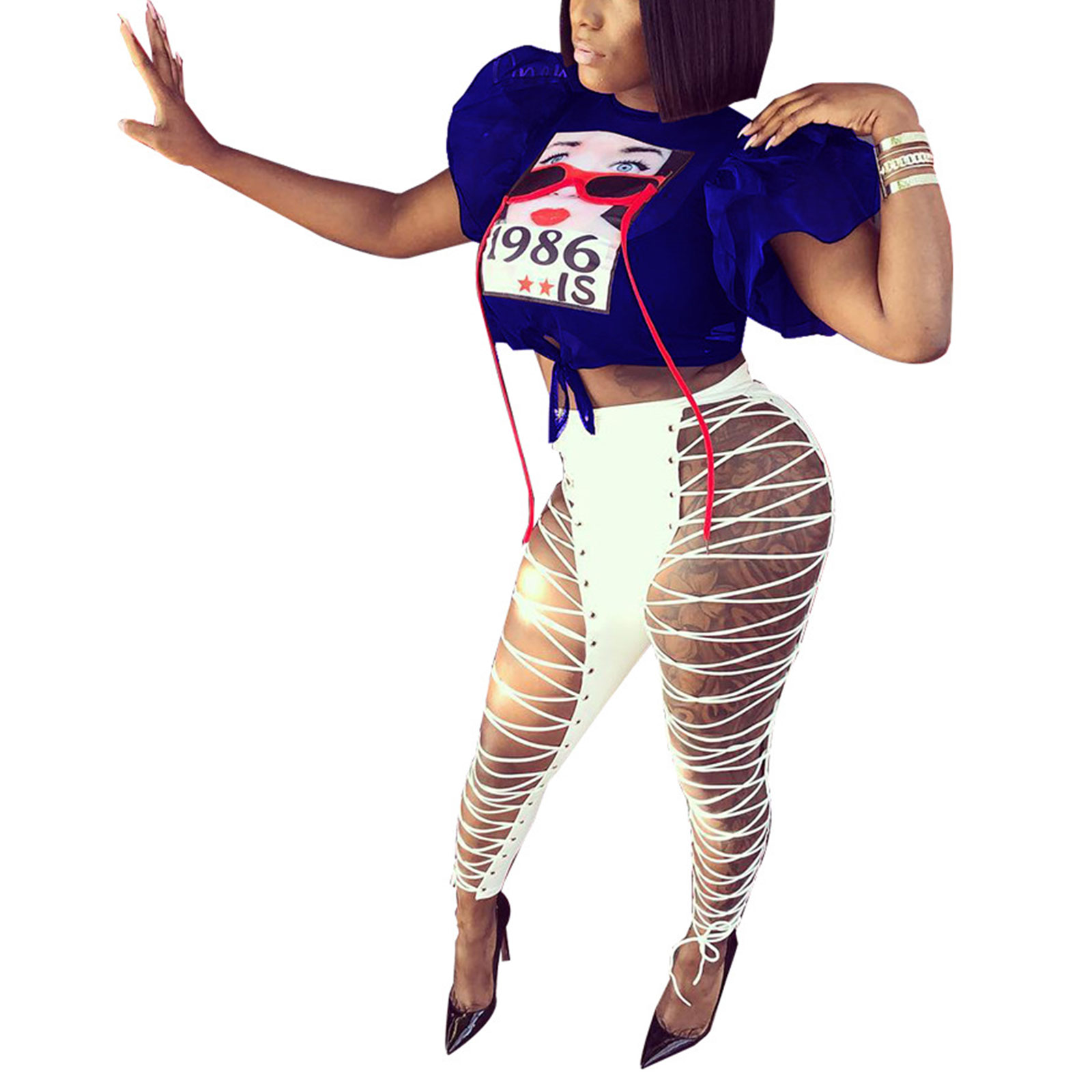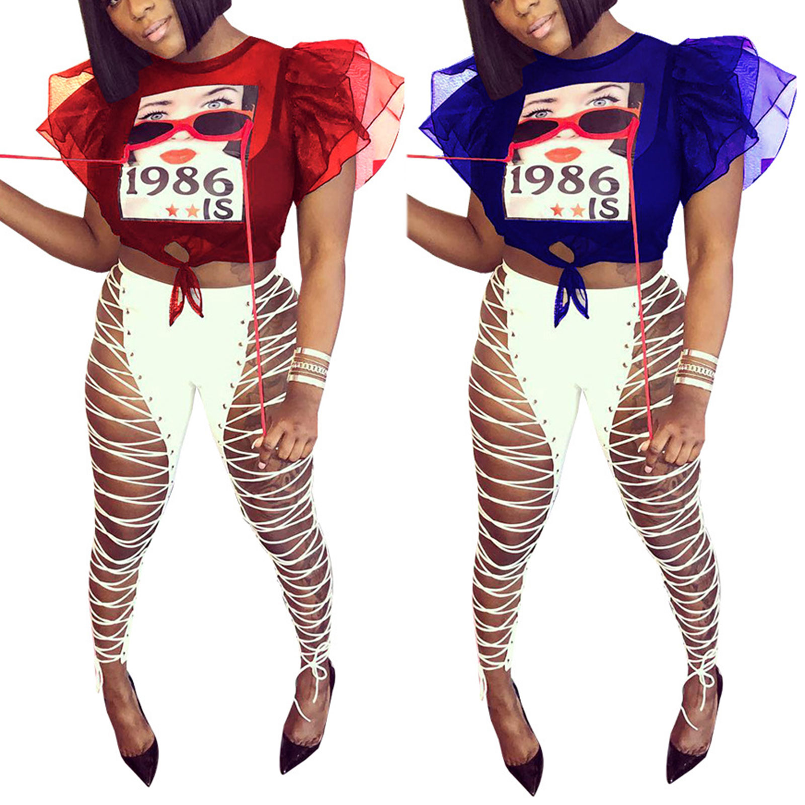 Характеристики: Подходящий Пол: Для Женщин Ткань: полиэстер Рисунок: принт Тип рукава: рукав с рюшами Вырез: круглый вырез Детали: ремешок, шнуровка Цвет: красный, синий Размер: S, M, L