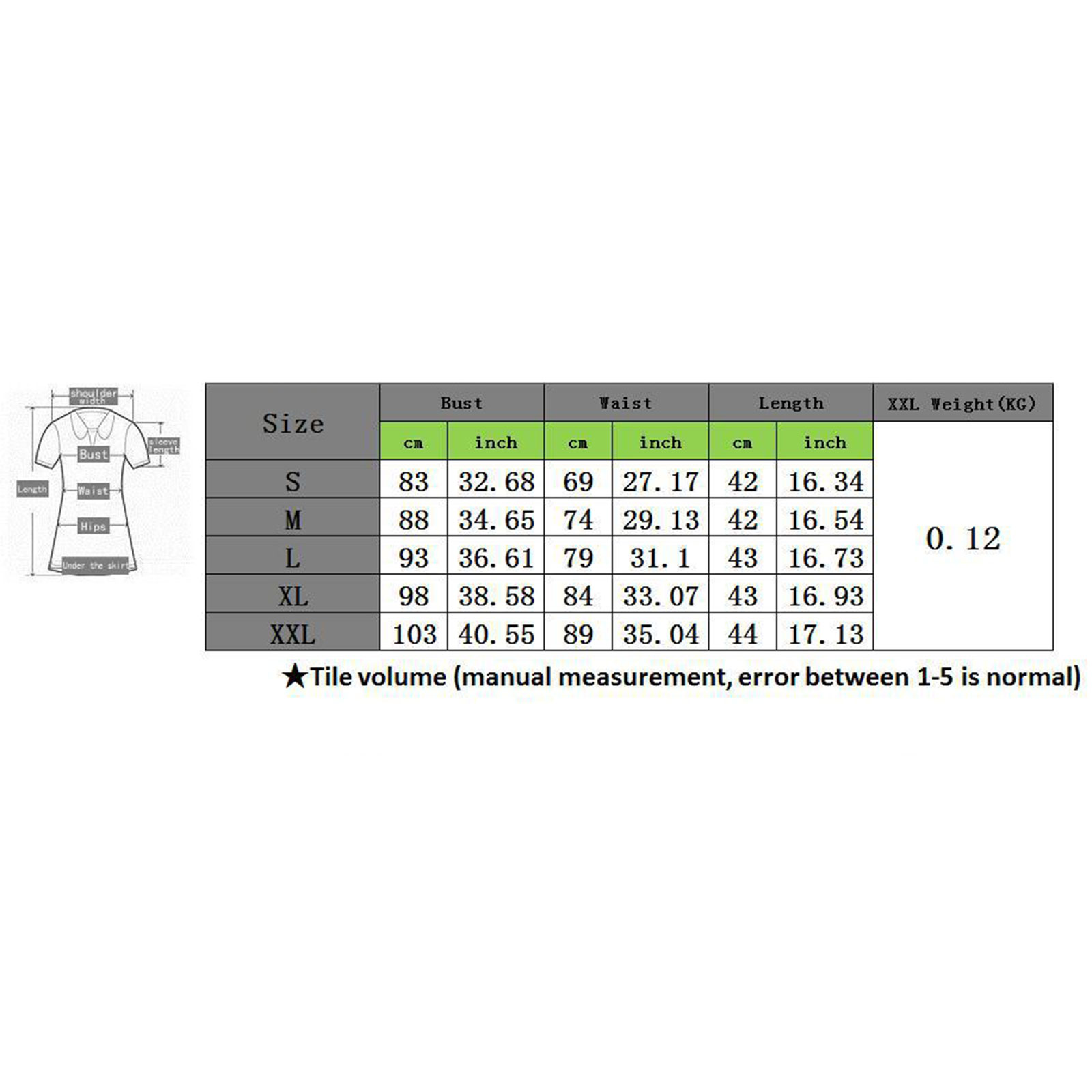Размер (дюйм) S Длина: 16,54 Обхват груди: 32,68 обхват талии: 27,17