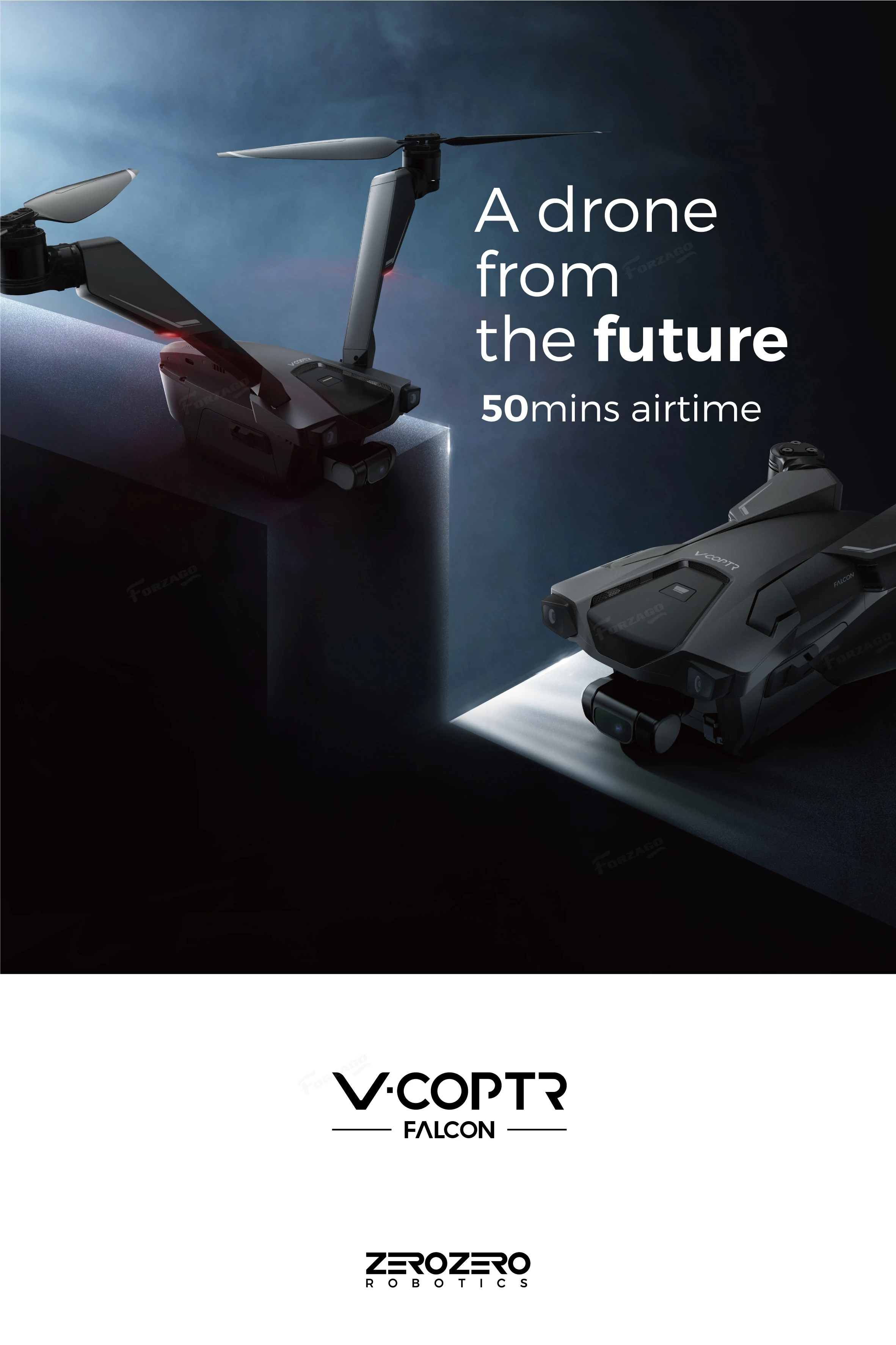 V-Shaped】: Совершенно новая v-образная двухроторная двигательная система в сочетании с фирменной технологией наклона ротора и нелинейным динамическим моделированием и алгоритмами управления позволяют длительному полету на 50 мин.