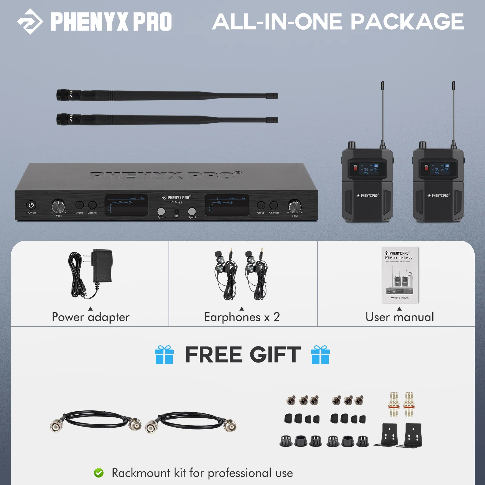 Элегантный, гладкий дизайн для передатчика и приемника в ухо монитора. Металлический передатчик этого студийного аудиомонитора имеет ЖК-панели, чтобы предоставить детали системы. Левый и правый входы для личного аудио смешивания с четким mono звуковым мониторингом. Беспроводная система IEM также запускает левую/правую линию обратно на звуковую панель или динамик. Он позволяет исходному аудиосигналу проходить через беспроводной монитор без влияния