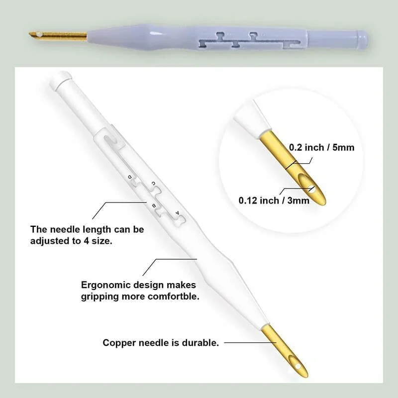 Регулируемая игла для вышиванияОтличный инструмент для вышивания и поделок своими рукамиИ является одним из самых быстрых видов рукоделия,Новички могут легко подобрать. Даже дети могут сделать это хорошо! Не нужно беспокоиться о пробоях, так как вы можете просто повторно нить!