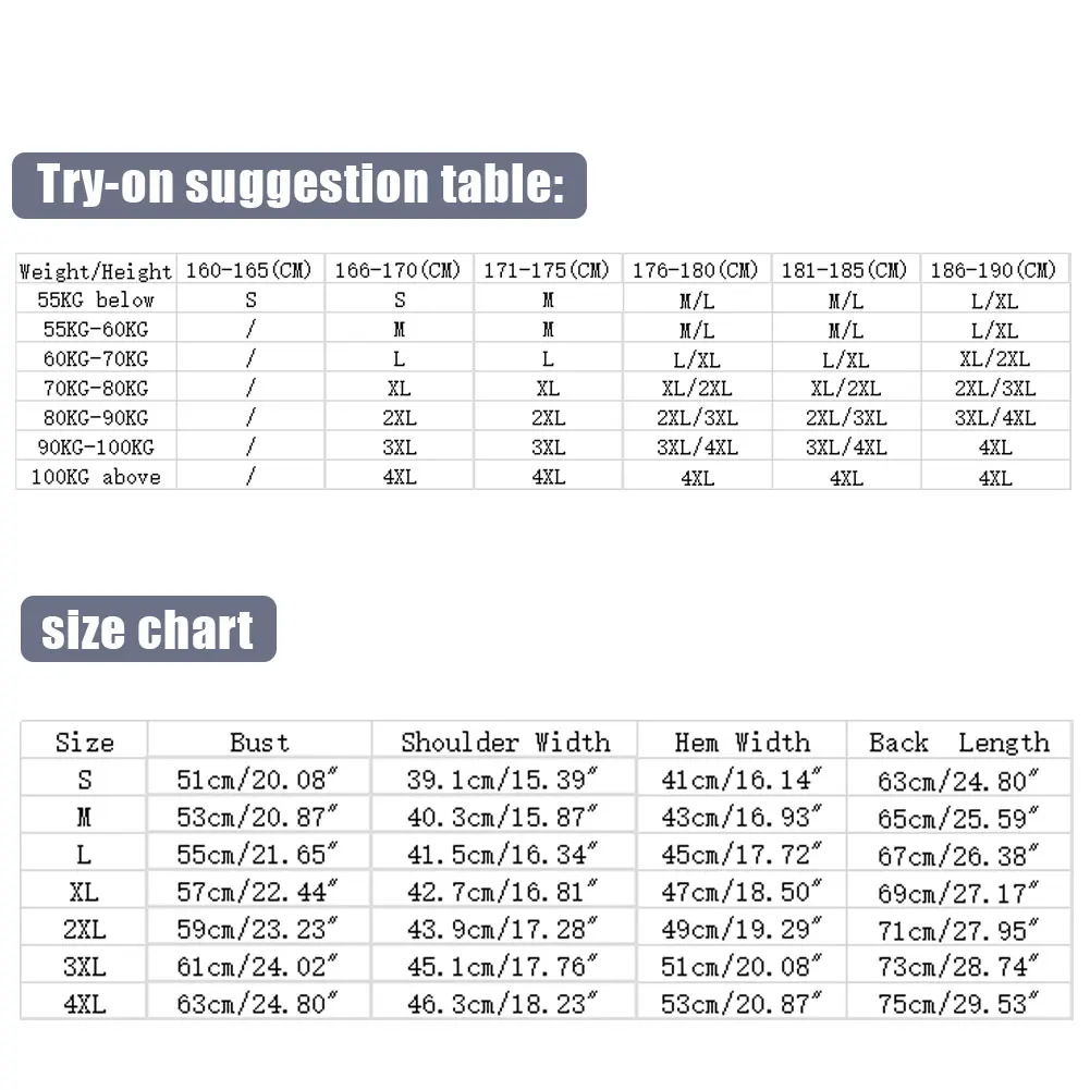 Вес/высота 160-165 (см) 166-170 (см) 171-175 (см) 176-180 (см) 181-185 (см) 186-190 (см) 55 кг ниже S S М М/Л М/Л L/XL 55 кг-60 кг / М М М/Л М/Л L/XL 60 кг-70 кг / L L L/XL L/XL XL/2XL 70 кг-80 кг / XL XL XL/2XL XL/2XL 2XL/3XL 80 кг-90 кг / 2XL 2XL 2XL/3XL 2XL/3XL 3XL/4XL 90 кг-100 кг / 3XL 3XL 3XL/4XL 3XL/4XL 4XL 100 кг выше / 4XL 4XL 4XL 4XL 4XLИнструкции: