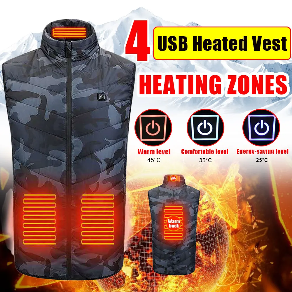 Камуфляж 4 зоны нагрева жилет Usb зарядка Термальность изоляции Отопление костюм из трех Скорость термостат нагрева Vestoutdoor Для мужчин Для женщин Для мужчин