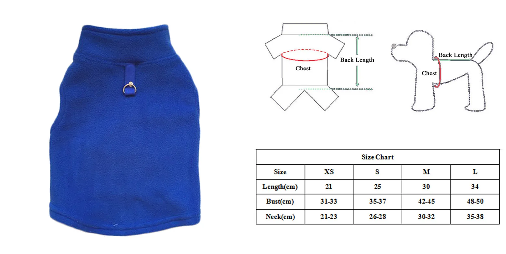 Плотный однотонный жилет из флиса для домашних животных, теплый и удобный, Повседневный, универсальный стиль. Крючок на спине предназначен для легкой привязки.