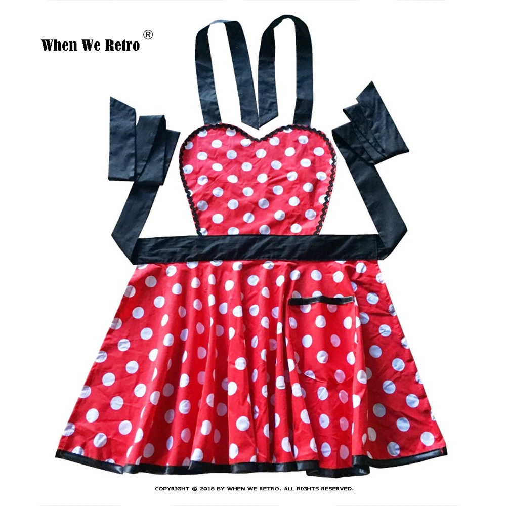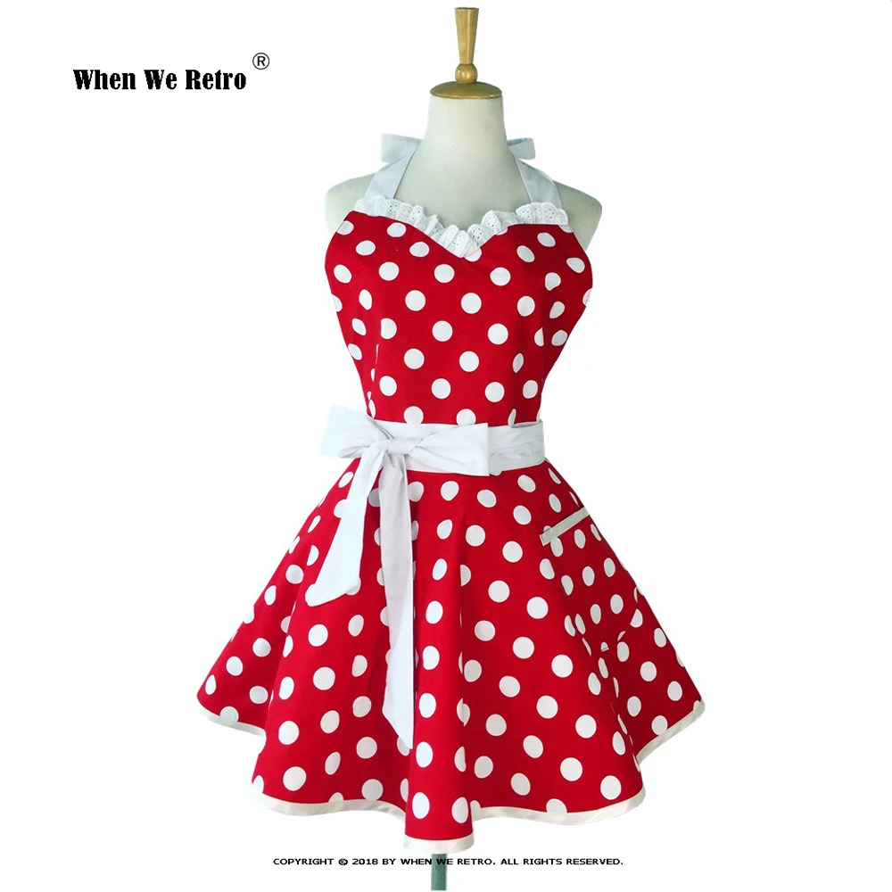Милый ретро хлопковый винтажный фартук VD2516 с лямкой на шее в горошек молочный чай магазин кухонные рабочие фартуки для женщин Одежда для официанток