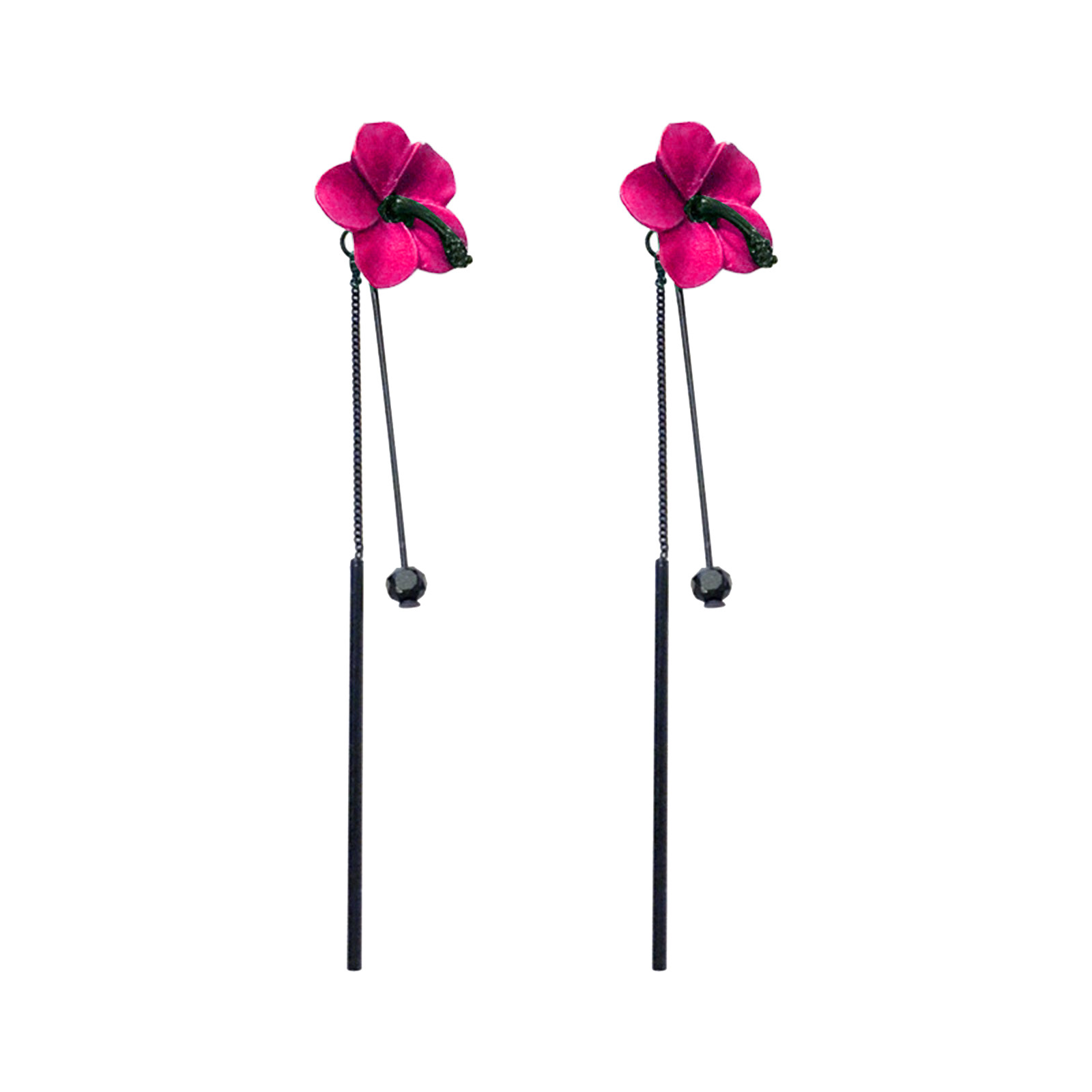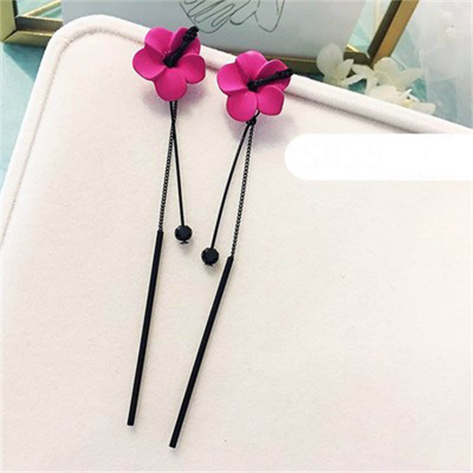 Wild Ear Jewelry Long Temperament Silver Needle Earrings Female Flower Earrings