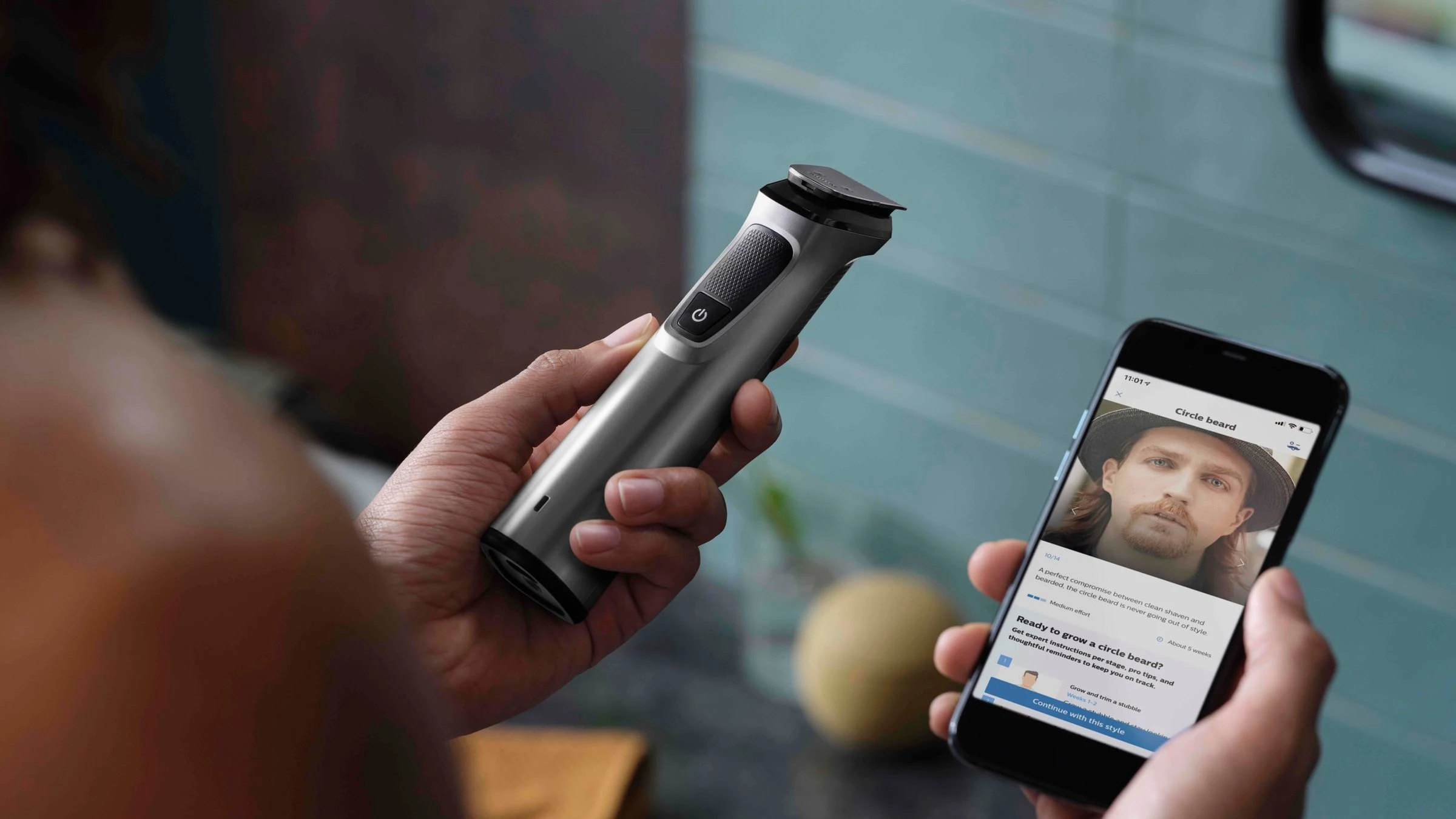 После обрезки Используйте прецизионную головку бритвы для идеального контура по бокам ваших щек, подбородка и шеи.